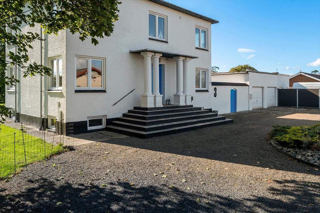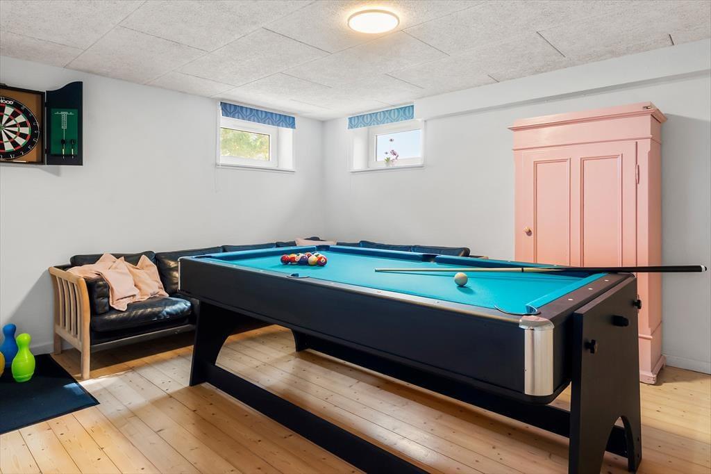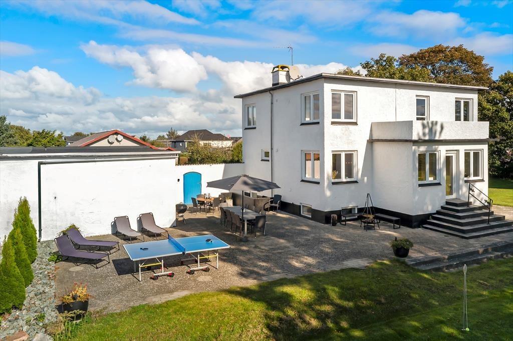Allerede ved indgangspartiet bliver man mødt af en flot og høj trappe og fire store søjler – tankerne ledes straks hen på ’Borte med Blæsten’! Indenfor fortsætter stilen med en flot hall med en istandsat trappe til 1.salen, som rummer tre af sommerhusets seks værelser, et lækkert badeværelse med spabad og en lille stue med udgang til altan. I stueetagen finder man udover hallen også et stort køkken, en stue med et stort sofaarrangement, et værelse, et badeværelse og endnu en lille stue, som kan åbnes op til haven og terrassen, mens kælderen rummer 2 værelser, et badeværelse og et hyggeligt aktivitetsrum med bl.a. bordfodbold og PlayStation-konsol. Alt i sommerhuset er nyrenoveret, så det fremstår i flot, moderne og tiptop stand med nyt inventar, velfungerende hårde hvidevarer og smukke møbler. Her er også trådløst internet og parabol, så både voksne og børn vil med garanti få mange gode og uforglemmelige timer i det skønne hus.