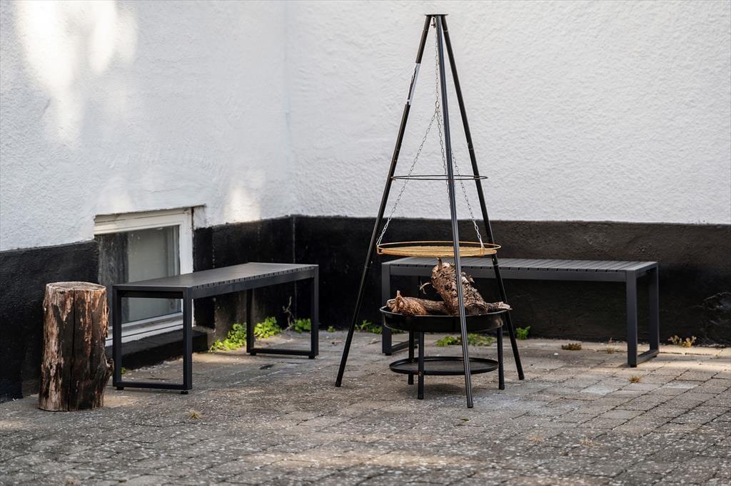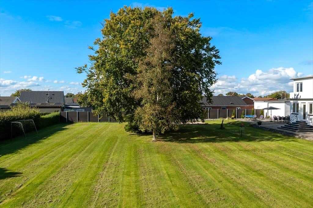Sommerhuset ligger på en stor, lukket havegrund med en kæmpe græsplæne, fodboldmål, legetårn, gynge, sandkasse og vippe. På den store og flotte terrasse er der gode havemøbler, tre solvogne, parasol, en fin grill, en lille bålplads og masser af plads til at lege og nyde sommeren, så også de udendørs rammer må siges at være helt ideelle for alle i familien.