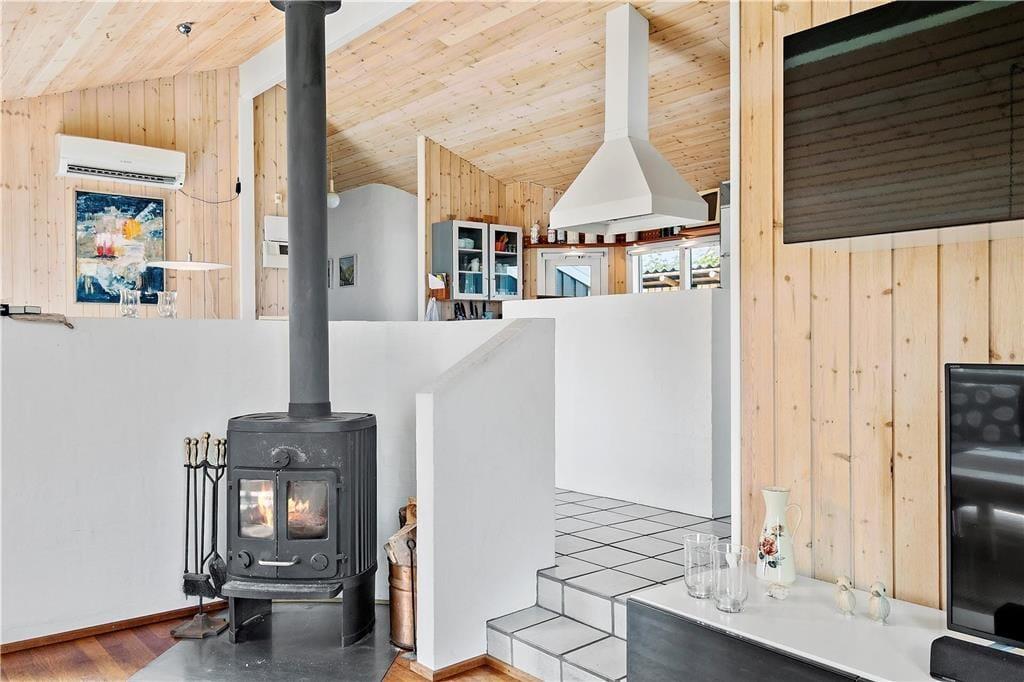 Huset er indrettet med 4 gode soveværelser med 3 dobbeltsenge og en køjeseng, et stort badeværelse med spabad og stor sauna og et gæstetoilet. Hjertet af huset er det store køkken-alrum, hvor feriens kulinariske udskejelser får sine udspring. Fra køkkenet er der åbent til stuen, som ligger et par trin nede i forhold til resten af huset. Fra stuen er der en flot udsigt over Kattegat. Og mon ikke også der bliver kamp om de værelser, der vender mod vandet. Tænk at vågne op til den udsigt.