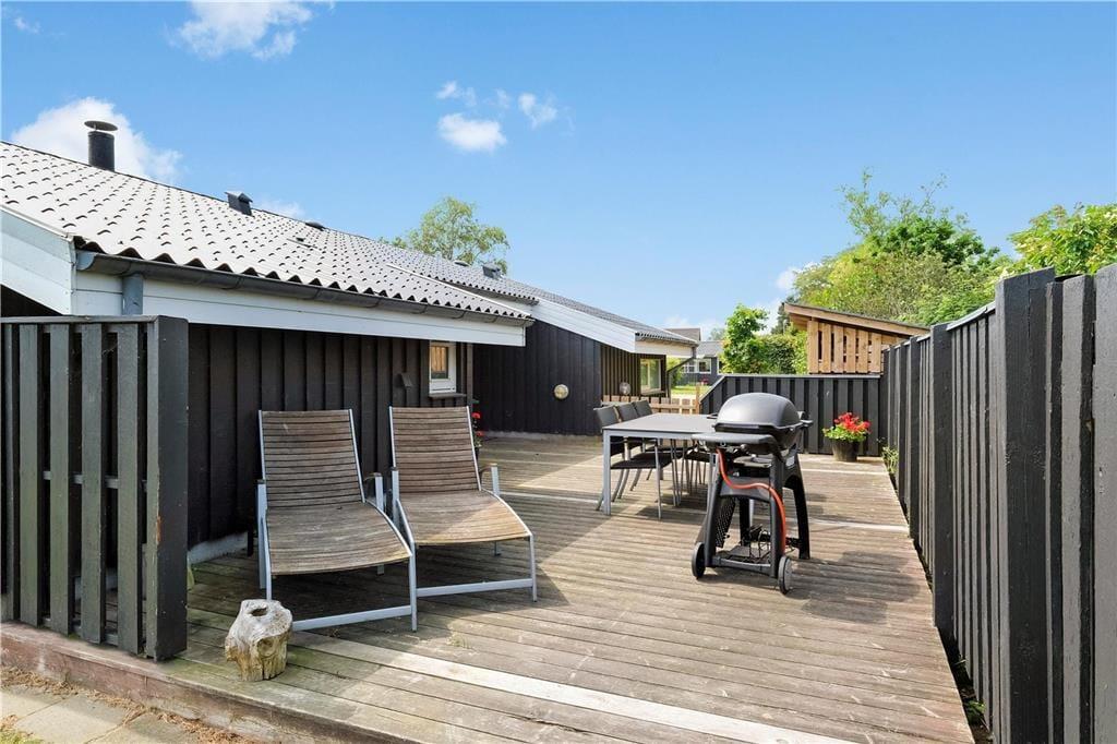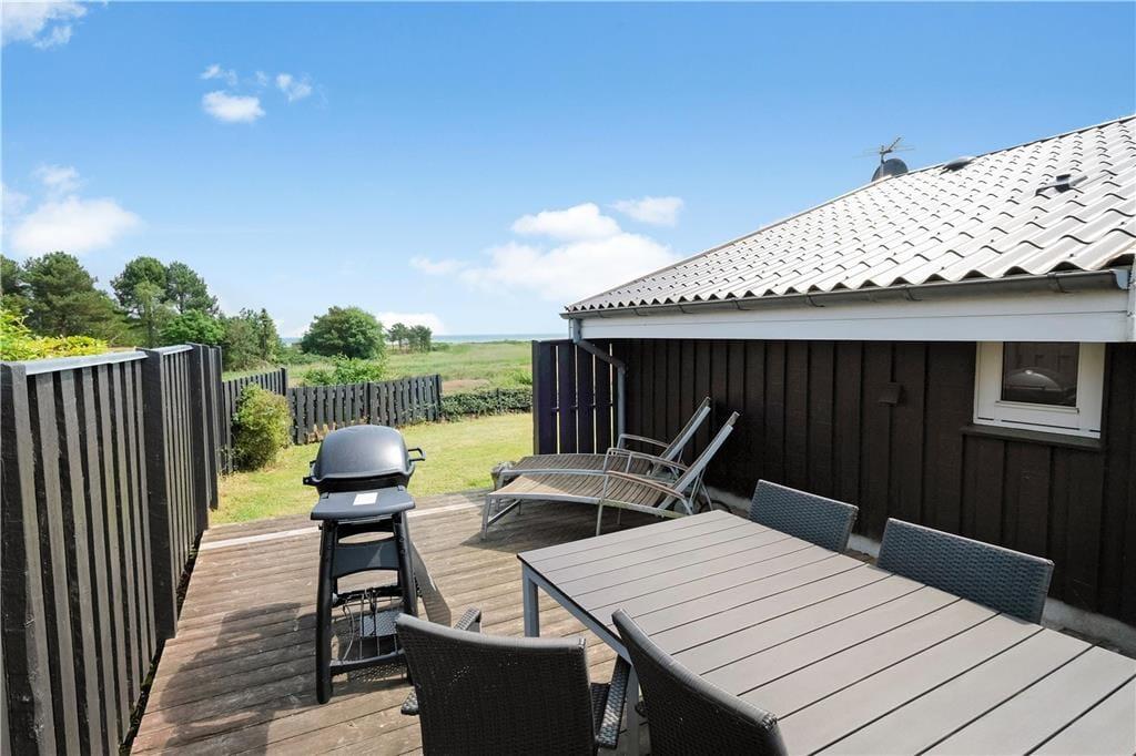 På begge sider af huset er der åbne terrasser, så det er altid til at finde en plads i solen, om det er til den stille kop morgenkaffe med et tænkende blik ud over havet, eller om det er til den hyggelige grillaften, mens ungerne spiller bold i haven. Der er masser af plads til timevis af hygge, sjov og afslapning udenfor.