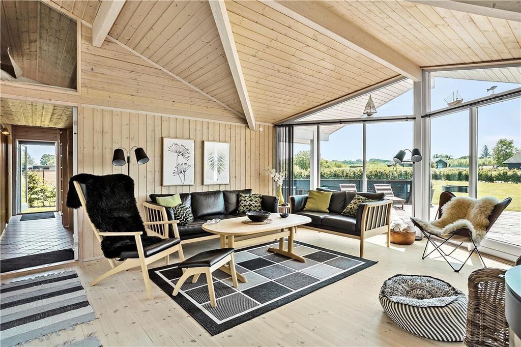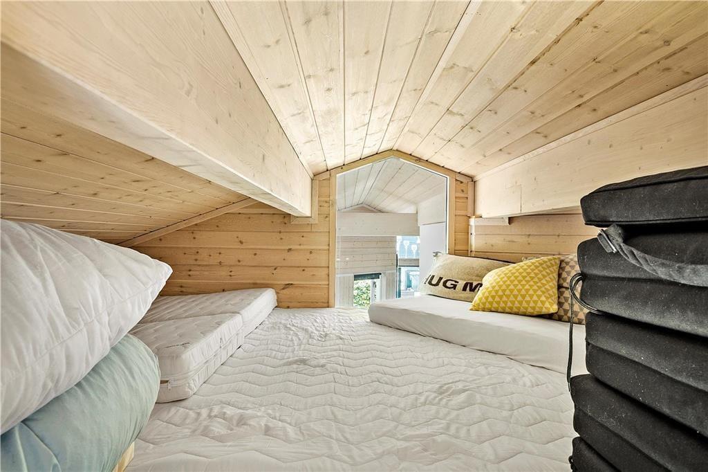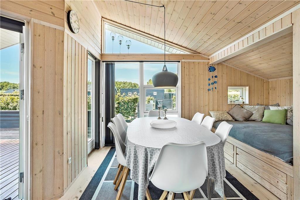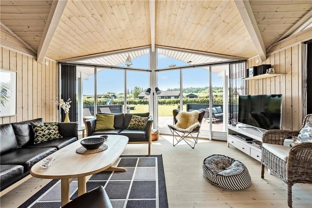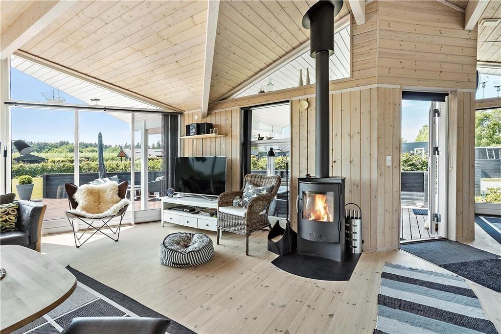 Husets hjerte udgøres af det nydelige, moderne køkken, spisestue og en stor, lys stue med behagelige og pæne møbler, samt en hyggelig brændeovn. Der er tre soveværelser hvoraf et har dobbeltseng et andet har dobbeltseng med enkeltkøje ovenover,det sidste soveværelse har to enkeltsenge, som kan skubbes sammen til dobbeltseng, hvis det ønskes. I forbindelse med spiseafdelingen er der en hyggelig alkove med dobbeltopredning og der er også plads til, at der kan sove to personer på hemsen. Der er et stort badeværelse med spabad til 2 personer, samt en fantastisk sauna. Der ud over er der et gæstetoilet, så morgenkøen kan deles i to og så teenagedatteren kan tage et langt bad uden at lave ridser i feriehumøret.
