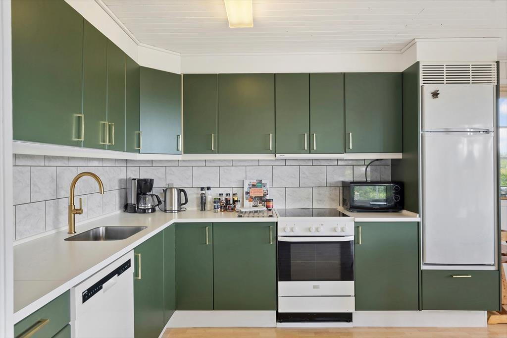In diesem Ferienhaus ist man sofort eingenommen von der spektakulären Aussicht aus dem Wohnzimmerfenster. Hier finden Sie alles, was Sie für einen wundervollen Urlaub brauchen. Der Sammlungspunkt für die Familie ist die offene Wohnküche, wo gemeinsam gekocht und gespielt werden kann. Oder man entspannt sich auf dem großen Ecksofa. Die behagliche Wärme dazu, liefert der kleine Kaminofen im Wohnbereich. In der Küche finden Sie sowohl einen Geschirrspüler, eine Mikrowelle und einen modernen Herd mit Ceranfeldern. Hier läßt sich leicht ein tolles Essen zubereiten, z. B. mit frischem Fisch aus dem Hafen. Das Haus hat drei Schlafzimmer. Zwei davon mit Doppelbetten und ein Zimmer mit zwei Einzelbetten. Das Badezimmer ist sehr geräumig. Hier finden Sie neben Whirlpool Waschmaschine.