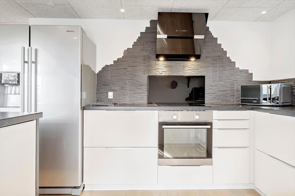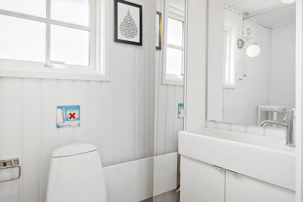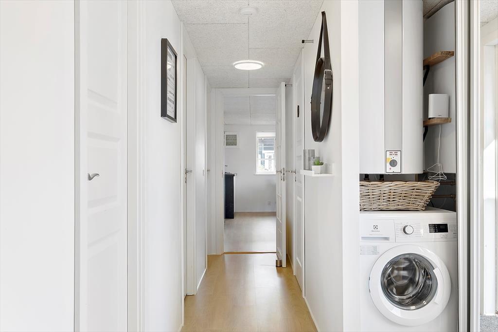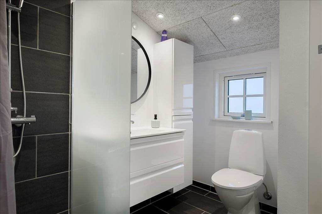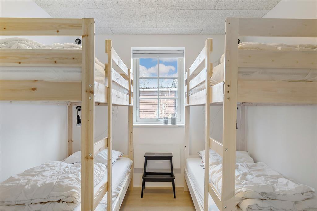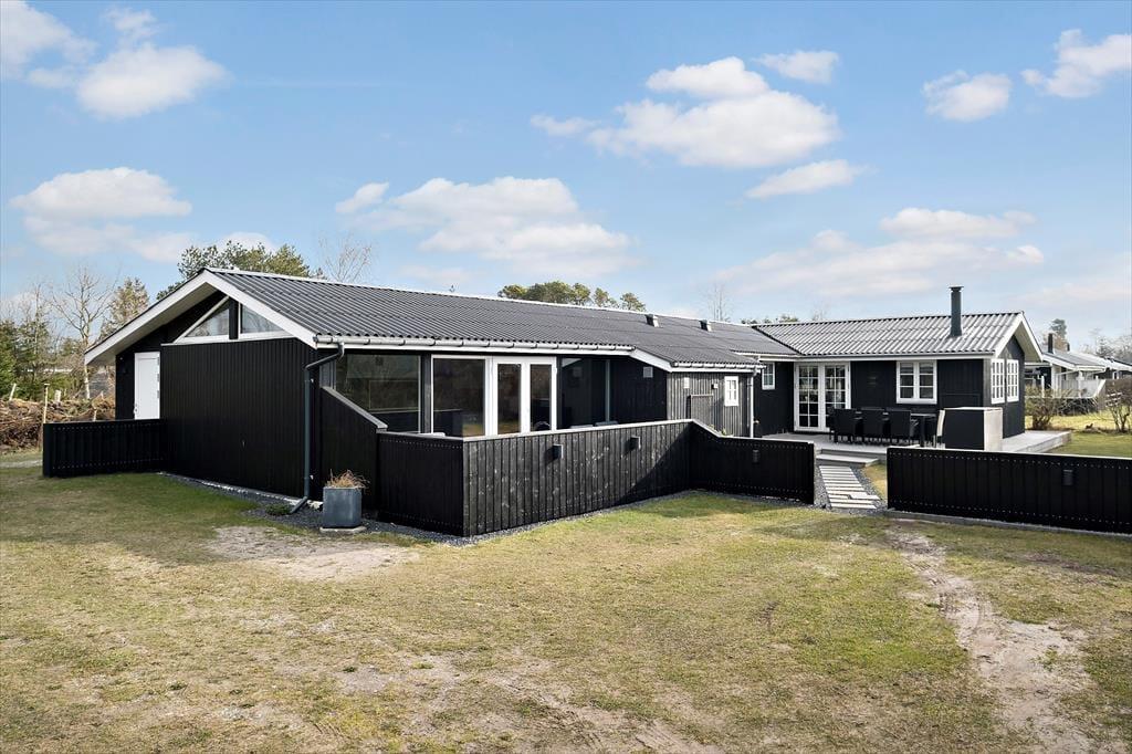 Sommerhuset er renoveret i 2021, så det fremstår særdeles flot og indbydende. Interiøret er holdt i diskrete farvetoner, så rammen om indendørslivet er skandinavisk og stilren, mens detaljer som stuens brændeovn skruer op for hyggefaktoren. Køkken og stue ligger i åben forbindelse på velfungerende vis, og derudover består planløsningen af to badeværelser og tre soveværelser med i alt otte sengepladser. En entré med vaskefaciliteter rummer sommerhuset også, og endelig er der poolafdelingen, som er lækkert indrettet med pool, spabad og sauna.