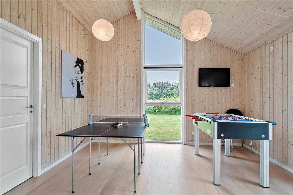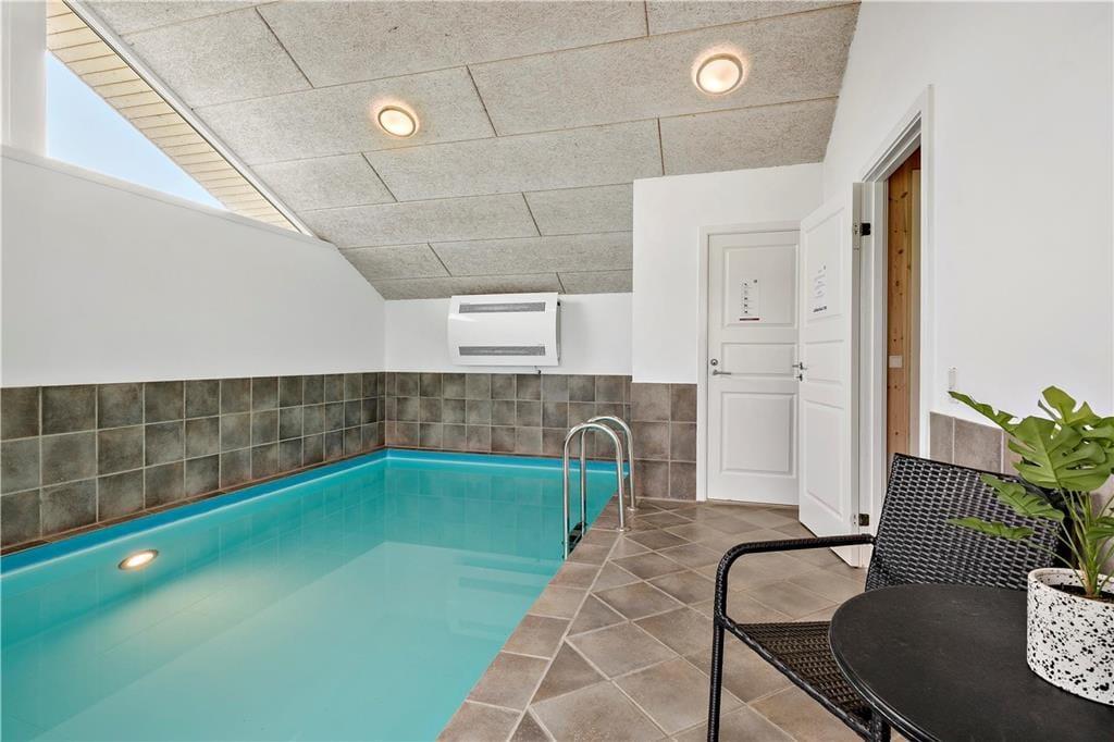 Lækkert og lyst poolhus fra 2009, som består af et stort stue-køkken-alrum, et aktivitetsrum med bl.a. bordfodbold og bordtennis, to gode badeværelser, 4 pæne soveværelser, hvor der er dobbeltseng i de tre og køjesenge i det fjerne, samt naturligvis et skønt rum med jeres egen swimmingpool. Over alt er der moderne og pænt og helt sikkert de bedste rammer for familiens badeferie - om det så er i poolen eller i havet.