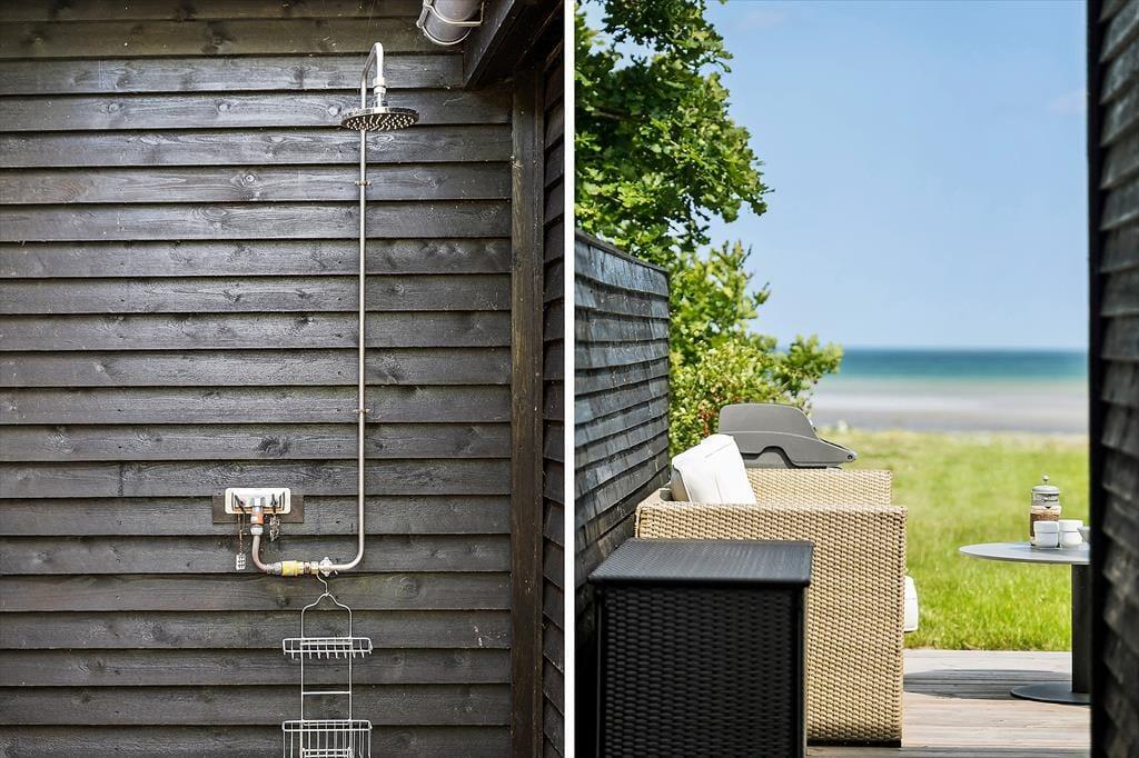 Føromtalte morgenkaffe kan det anbefales at nyde på husets store østvendte terrasse i det spæde morgengry, mens naturen vågner og nattens dug langsomt fordamper fra græs og planter. Det er en salig fornemmelse, som det er alle velundt at opleve, når man nu endelig har ferie fra den hektiske hverdag. En salighed, som bliver i kroppen langt op af dagen. En stor del af terrassen er overdækket, så der er næsten ingen vejrmæssige undskyldninger for at trænges indendørs. Frisk luft, masser af lys og frihed!