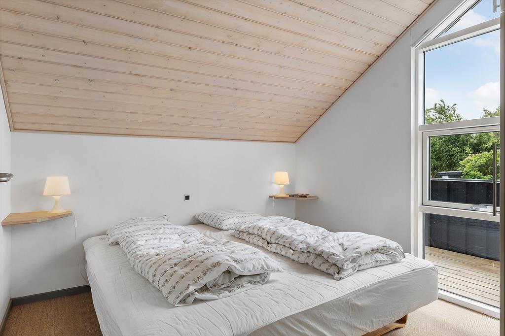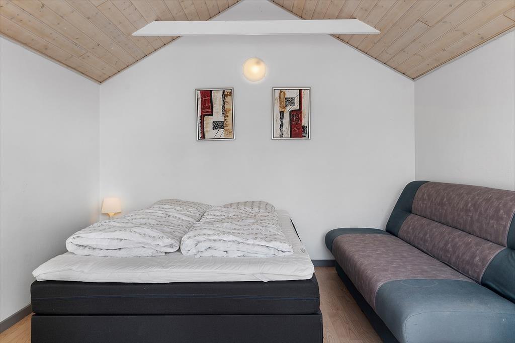Her er 3 soveværelser inde i sommerhuset, alle med gode dobbeltsenge. Husets yngste gæster kan snige sig op på hemsen og ligge i ro og fred og hygge med en god bog eller ipad’en.