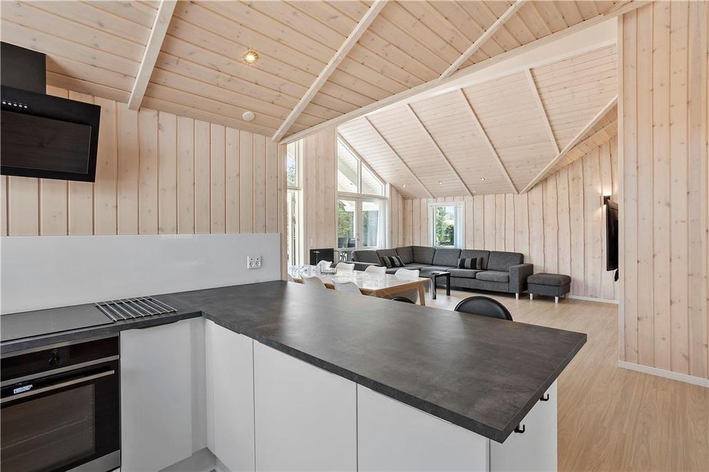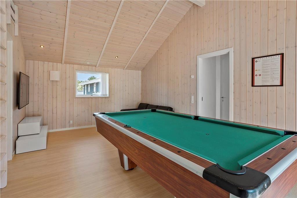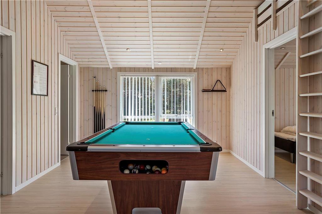 Hele 131 velindrettede, lyse og særdeles indbydende kvadratmeter kan I brede jer på i sommerhuset, der er et kønt kvalitetsbyggeri fra 2019. Et af husets samlingspunkter er stuen, som er et lækkert opholdsrum med biopejs, loft til kip og store vinduespartier, der inviterer dagslyset indenfor og giver udsigt til den grønne have. En veludstyret køkkenafdeling er integreret med stuen, så det er nemt at bære færdiglavede lækkerier over til langbordet, når det er spisetid. Efter måltidet kan I rykke over i sofaafdelingen – eller også kan I flytte hyggeseancen ind i aktivitetsrummet, hvor I kan spille pool og Playstation 4. Trænger I til at få varmen og koble helt af, kan I gå i sauna og benytte jer af spabadet, der er installeret på det største af husets to badeværelser. Og endelig kan I glæde jer til en god nats søvn på de fire soveværelser, der alle er udstyret med komfortable dobbeltsenge.