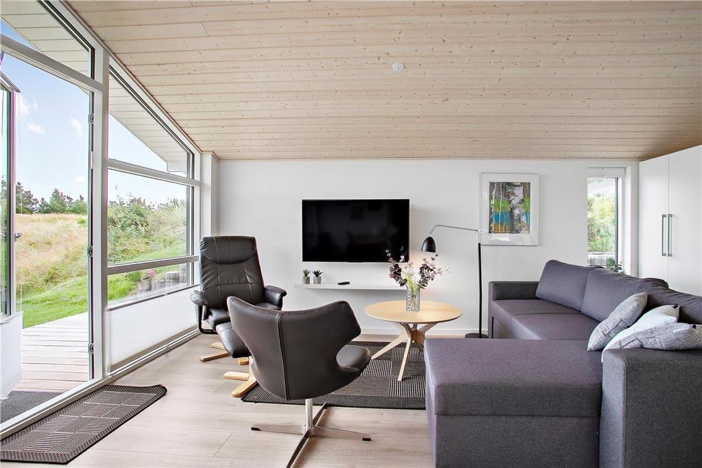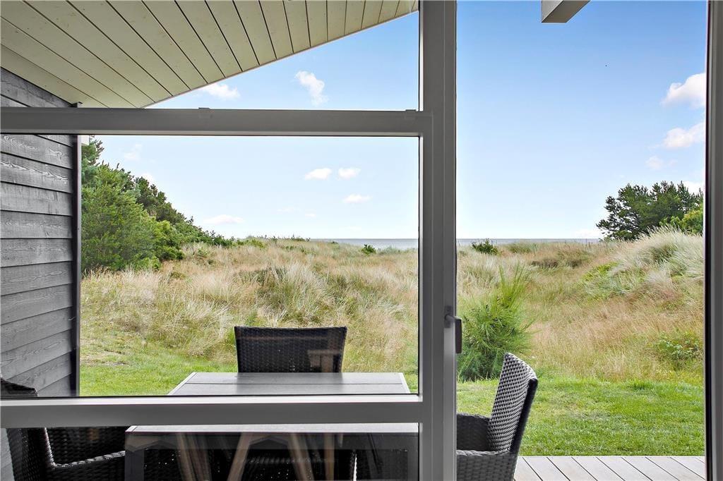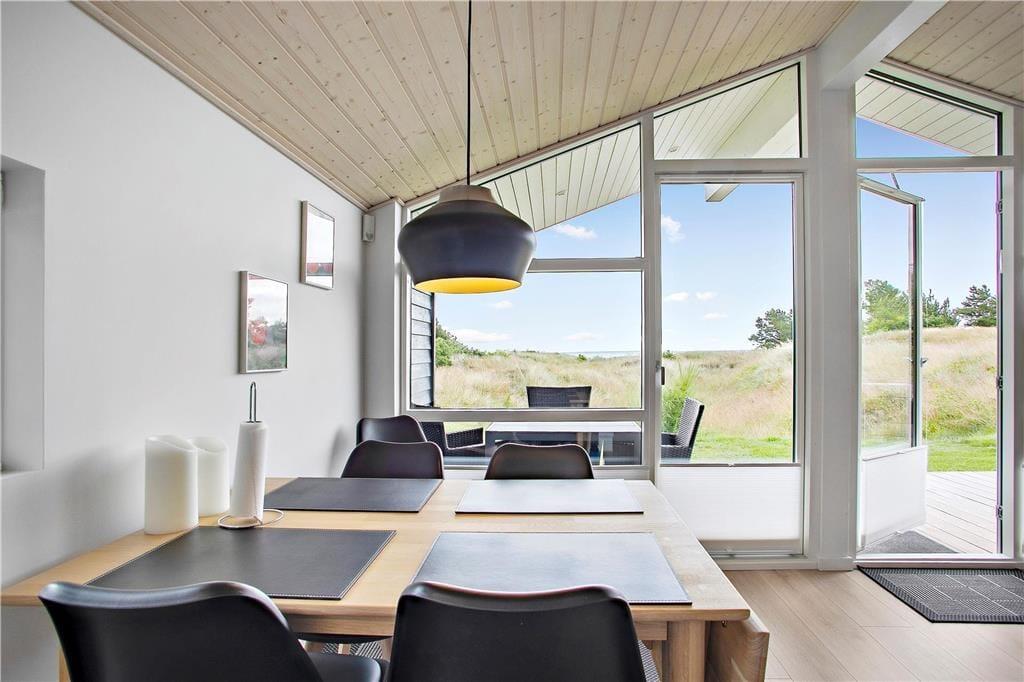 Dette skønne feriehus i Øster Hurup har en helt suveræn placering, hvis I holder af havluft og fri natur. Huset ligger blot 75 meter fra stranden, og fra både opholdsrum og terrasser er der en fantastisk udsigt over havet og det naturrige landskab.