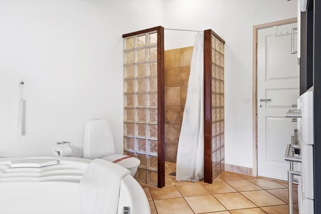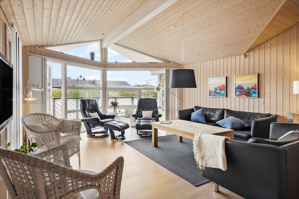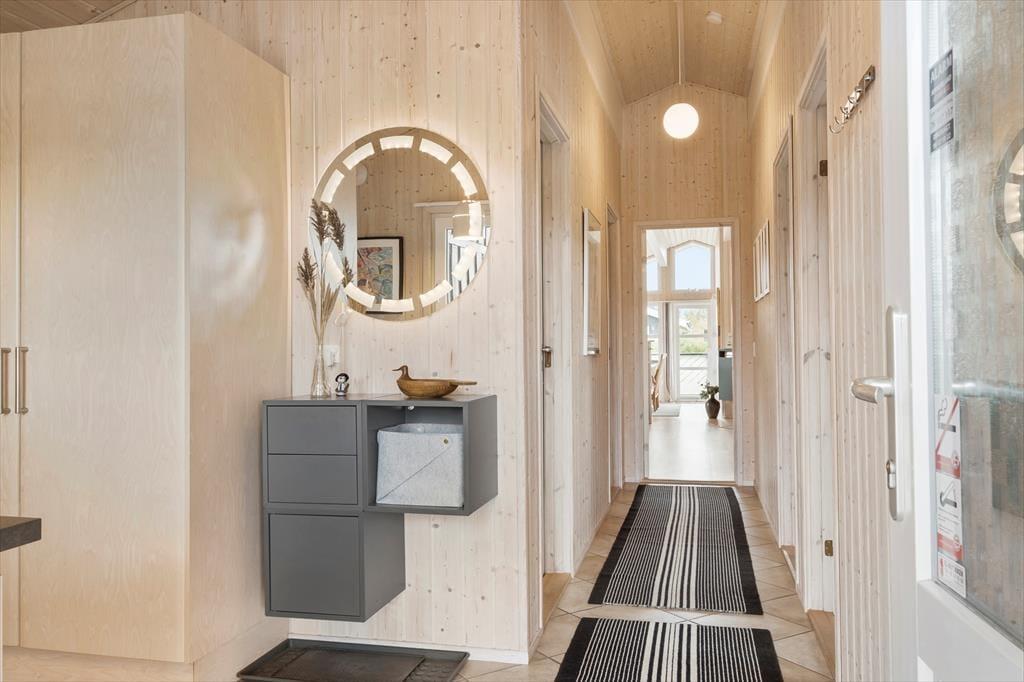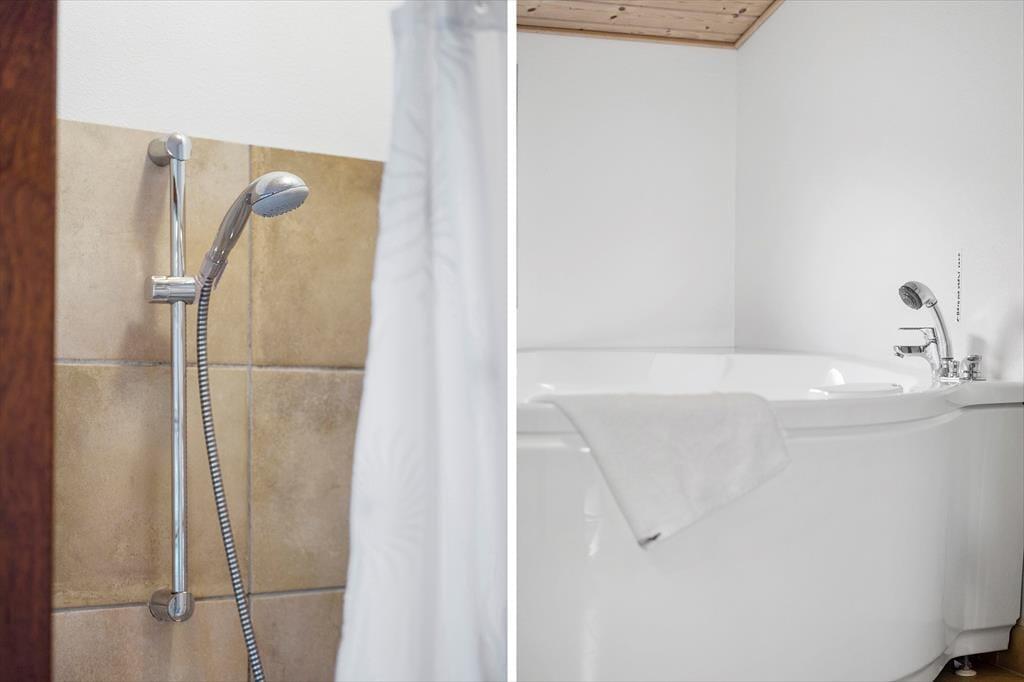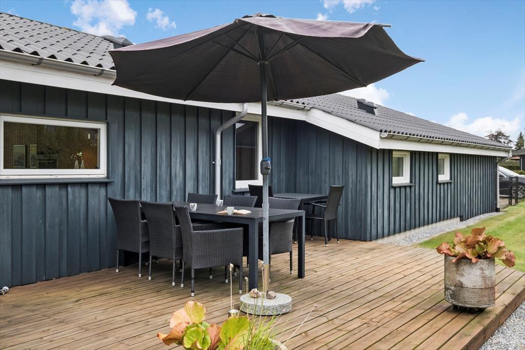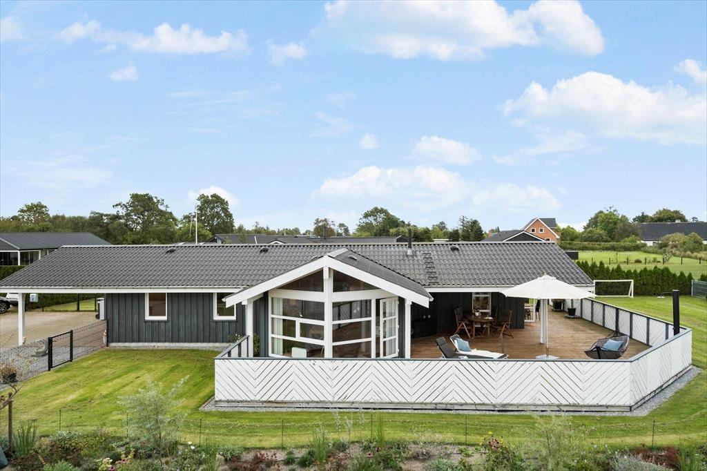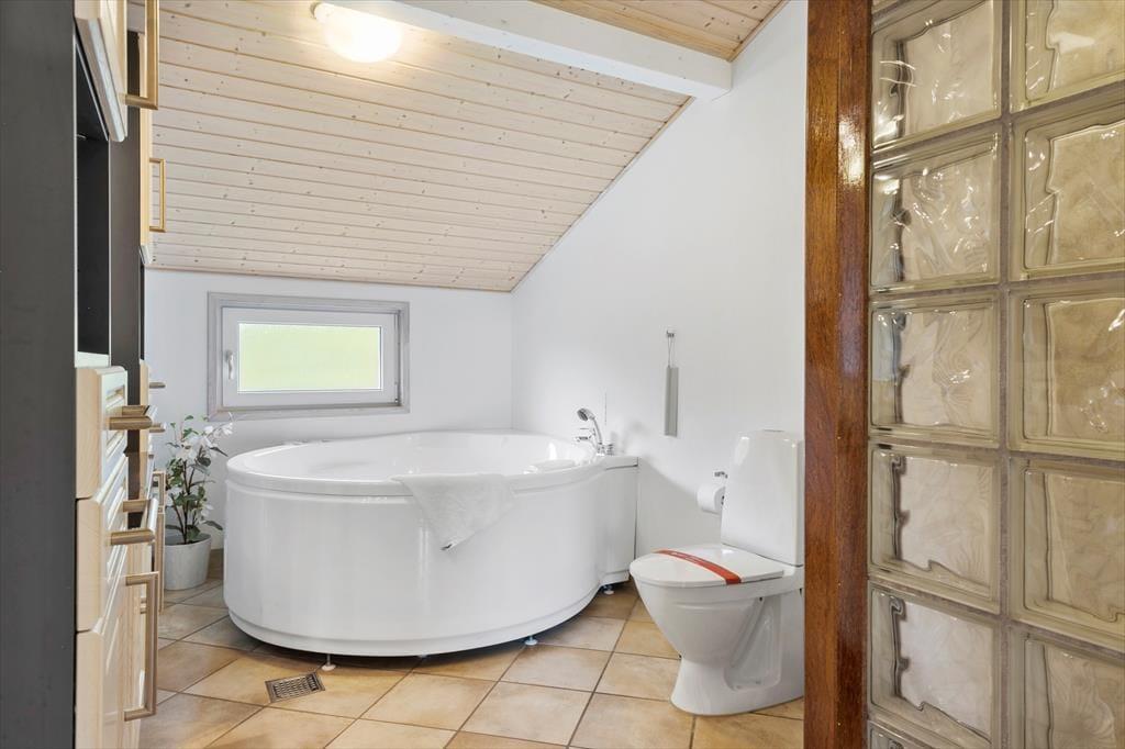 Sommerhuset, som er et nyere eksemplar fra 2008, byder på hele 131 m2 inden døre. Med andre ord er der masser af plads at brede sig på, og rummene er samtidig indrettet med mange lækre detaljer, der gør ferielivet komfortabelt – inklusiv TV med Chromecast i stuen, et flot åbent køkken samt spabad på det ene badeværelse. Den gennemtænkte planløsning har også betydning for, at otte personer nemt kan holde ferie sammen her i huset: Badeværelser er der to af, og de fire soveværelser er alle udstyret med gode dobbeltsenge. Har I brug for at vaske tøj, er der både vaskemaskine og tørretumbler i bryggerset, og endelig fungerer den store stue som et skønt samlingspunkt, når I vil hygge jer omkring spisebordet eller i sofaafdelingen.