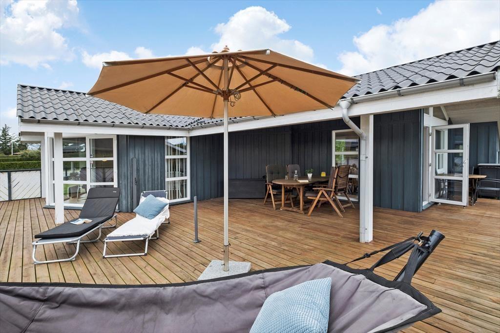 Hyggestunder nær brændeovnen, afslapning i spabadet og grillmiddage på solterrassen. Dette store og velindrettede sommerhus har plads til det hele og mere til – og så ligger det endda på en dejlig lukket grund i Øster Hurup.