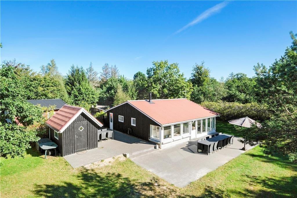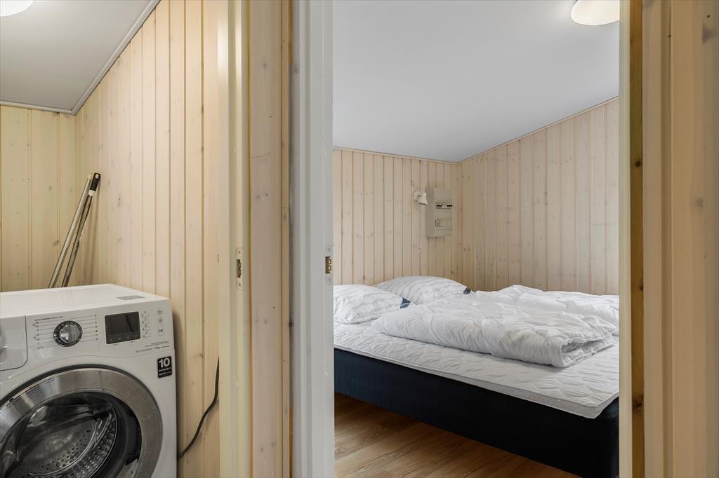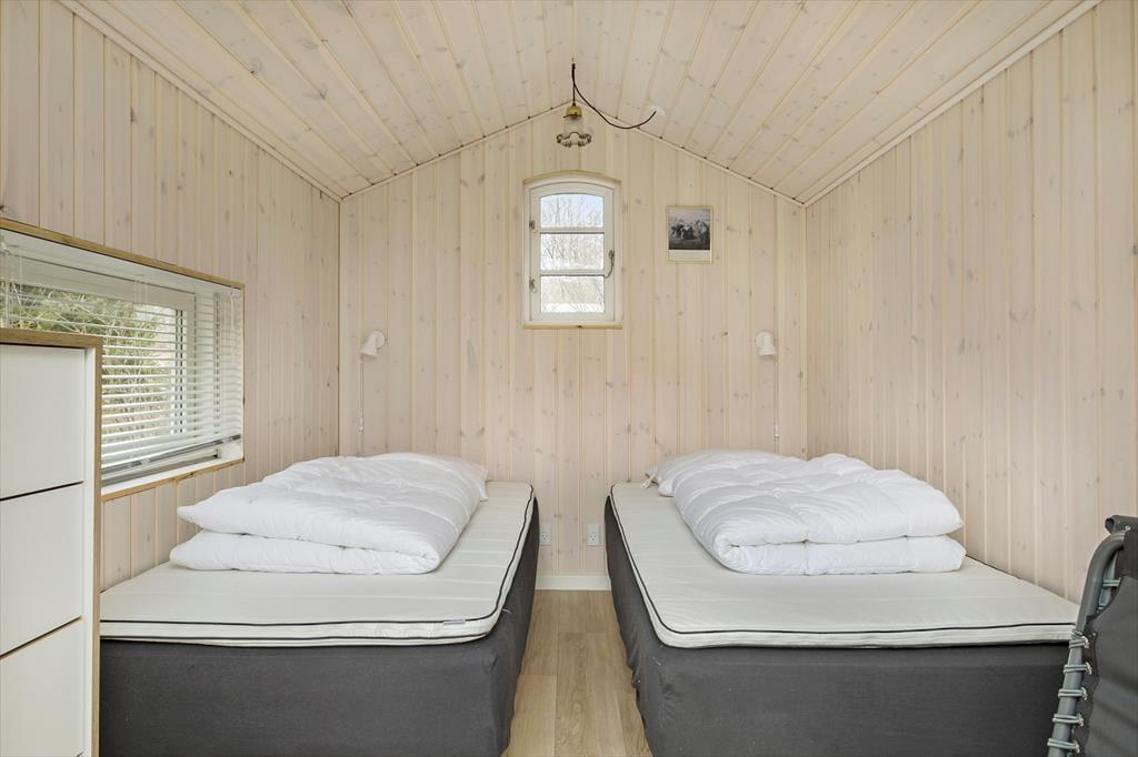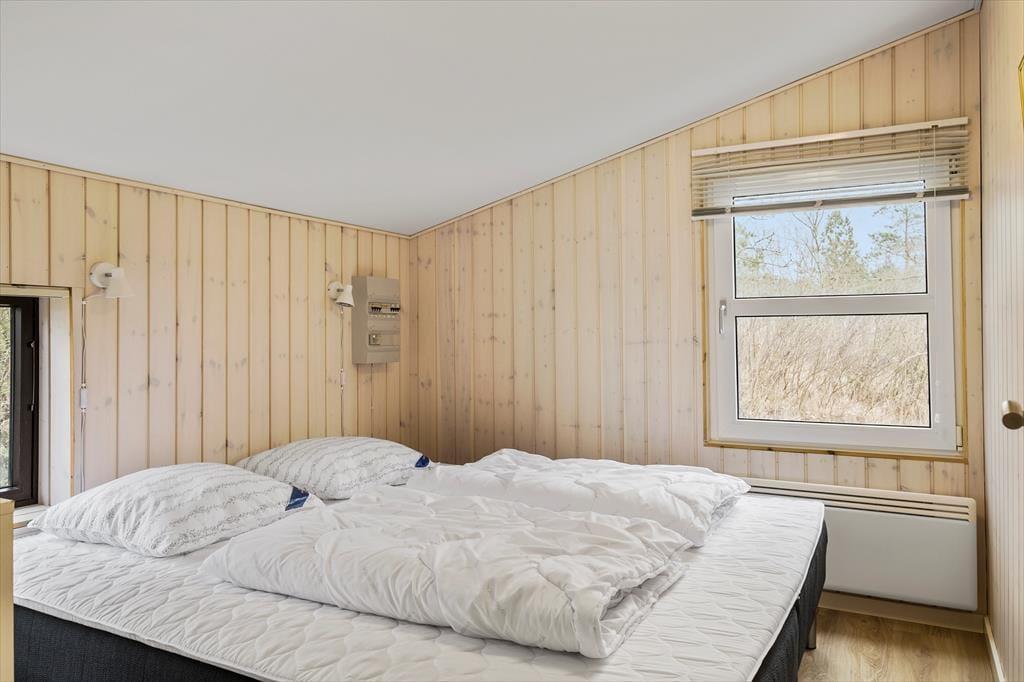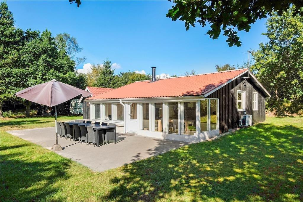 Huset emmer af ”rigtig” sommerhuscharme med sin sortmalede træfacade og hvide vinduesrammer. Indenfor er der lyst og indbydende, og indretningen sætter ferieturens hyggelige samvær godt i scene. Husets hjerte er det store opholdsrum i forskudte niveauer, der ligger i åben forbindelse med køkkenet. Lyset strømmer ind gennem de mange vinduespartier, og der er fint kig til det grønne udenfor. En brændeovn sørger for at tilføre ekstra hygge og varme på de kølige aftener. Der er tre dobbeltværelser i huset samt to badeværelser. I tillæg er der et anneks med endnu to sovepladser.