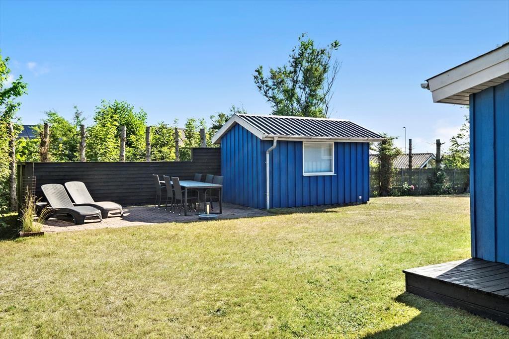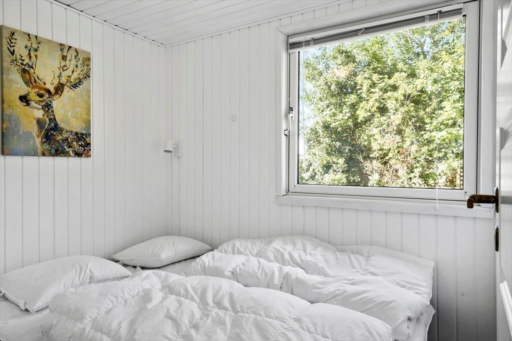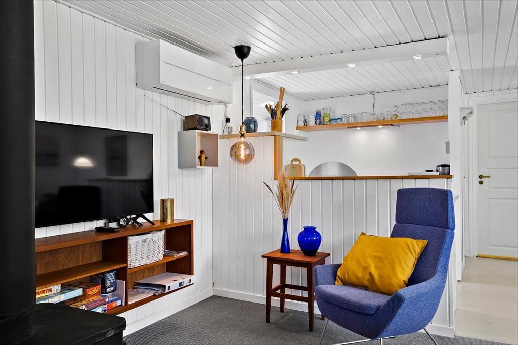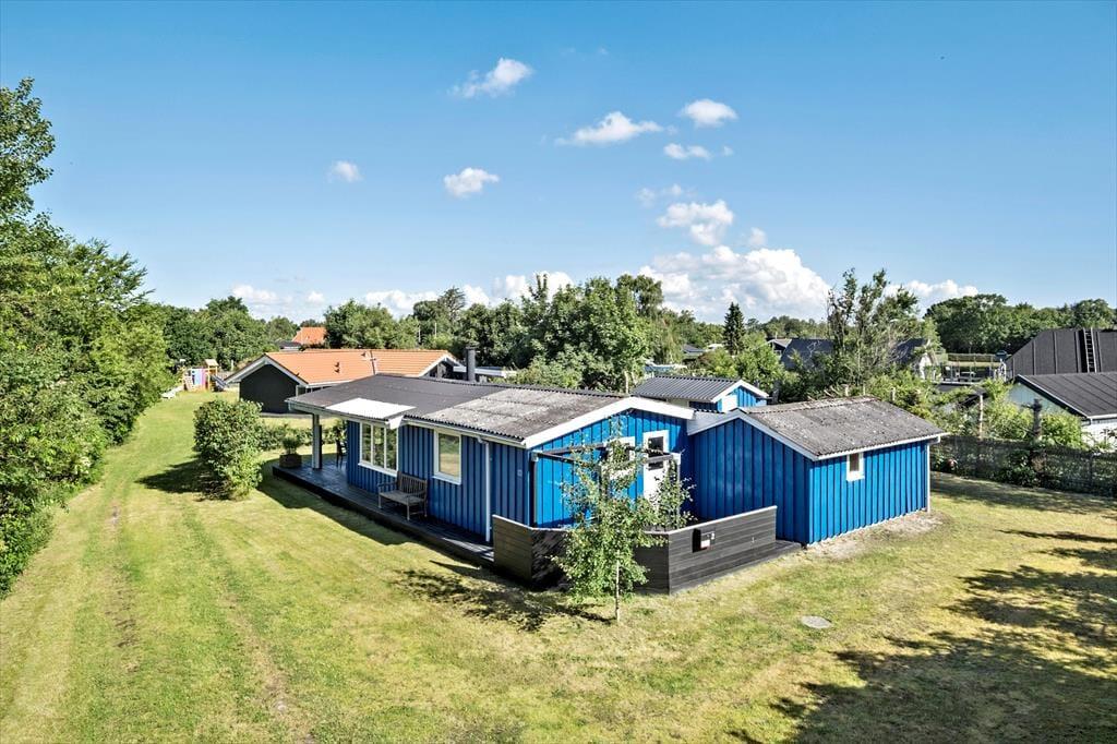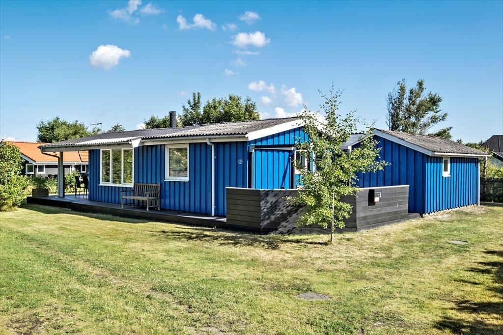 Huset emmer af klassisk charme med sin blåmalede træfacade og hvide vinduesrammer, der skaber en skøn kontrast til alt det grønne i haven. Her mærker man feriefølelsen indfinde sig, så snart man parkerer bilen! Indenfor i huset er der lyst og indbydende, og indretningen er ideel til det hyggelige samvær på ferieturen. Stue og køkken ligger i åben forbindelse, og en brændeovn tilfører ekstra lune, når aftenen falder på. Hjørnevinduerne i stuen trækker masser af lys ind i huset. I får tre soverum, hvoraf de to har egen udgang til terrasse. Herudover et badeværelse med brus.