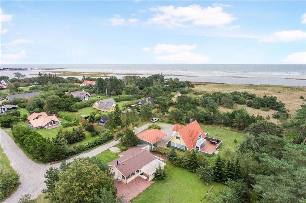 Sommerhuset ligger for enden af Strandbækken og lige ud til et grønt område, der åbner sig ud mod Kattegat. Der er blot 150 meter til vandet, og fortsætter I en smule mod syd, kommer I hurtigt til stranden Novolund. Her er der anlagt en badebro, så I nemt kan gå ud over det lave vand, når I vil bade eller sole jer på sandbankerne. Bevæger I jer mod nord, kommer I hurtigt til Øster Hurups charmerende havnemiljø og til byens centrum med spisesteder og indkøbsmuligheder.