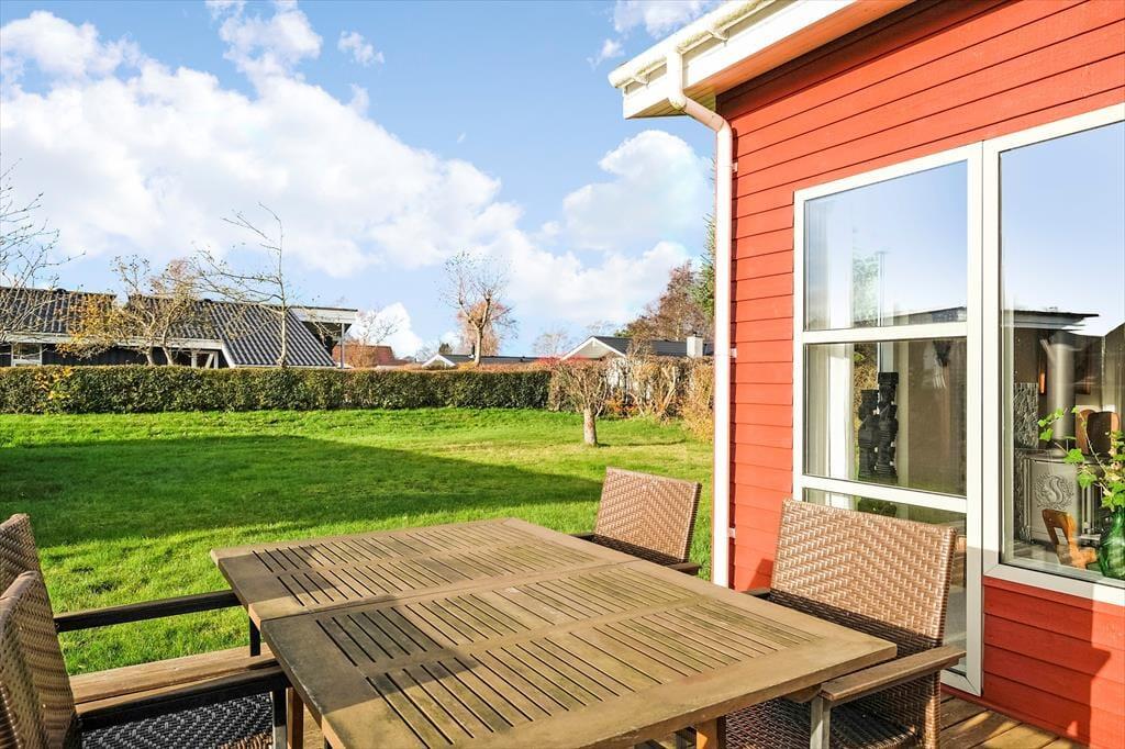 Den overdækkede terrasse er afskærmet til begge sider, så selv på en lidt vindblæst dag kan det være rart at slænge sig her. Den åbne del af terrassen er et godt valg, når solen står højt over Øster Hurup – så gælder det bare om at gøre grillen klar og finde noget køligt at drikke frem, før ferielivet føles helt fuldendt. Børnene kan hygge sig med at lege og spille bold på grundens græsplæne, og til bilen er der en carport.