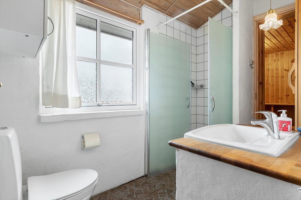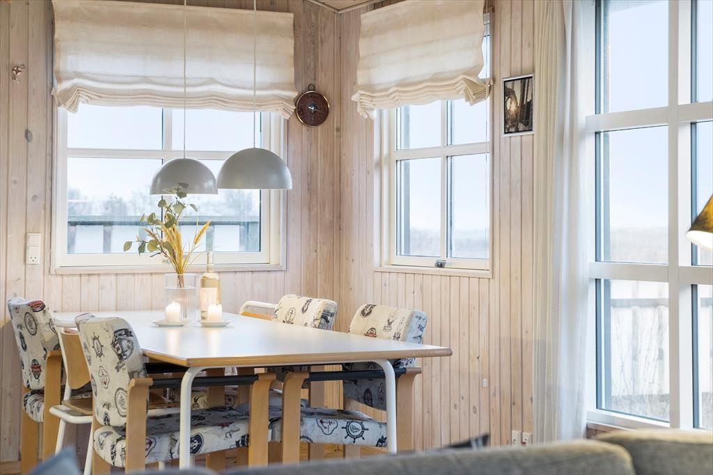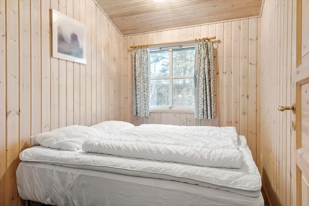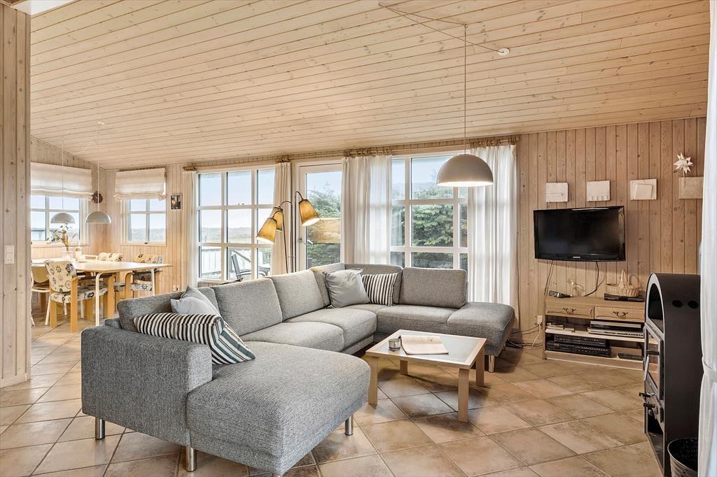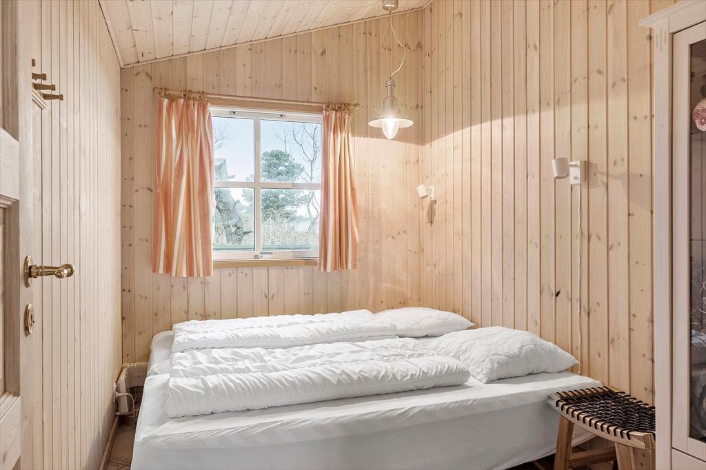Sommerhuset ligger i anden række til kysten, og mod nordøst har I fri udsigt over strandengen og til vandet. Det skaber et smukt bagtæppe, når I hygger jer i opholdsrummets åbne køkken og ved spisepladsen, mens sofaarrangementet er fornuftigt placeret lige ved brændeovnen og fladskærms-tv’et. I forlængelse af husets badeværelse ligger saunaen, der kan gøre en rolig feriedag fuldkommen nydelsesfuld, og når I er kommet helt ned i tempo, kan I se frem til at sove godt og længe i dobbeltsengene på de tre værelser.
