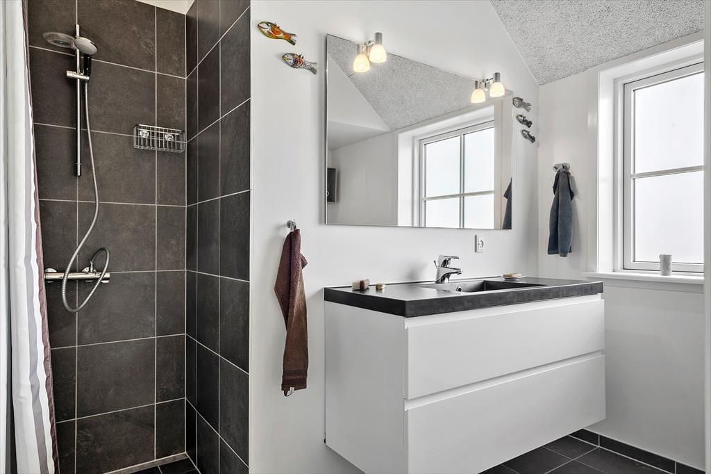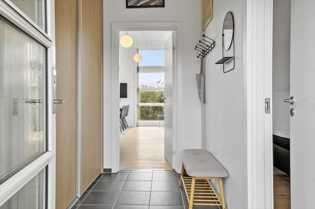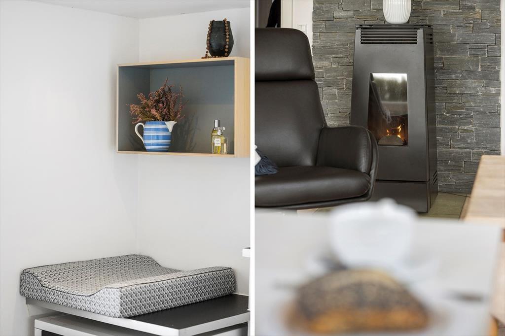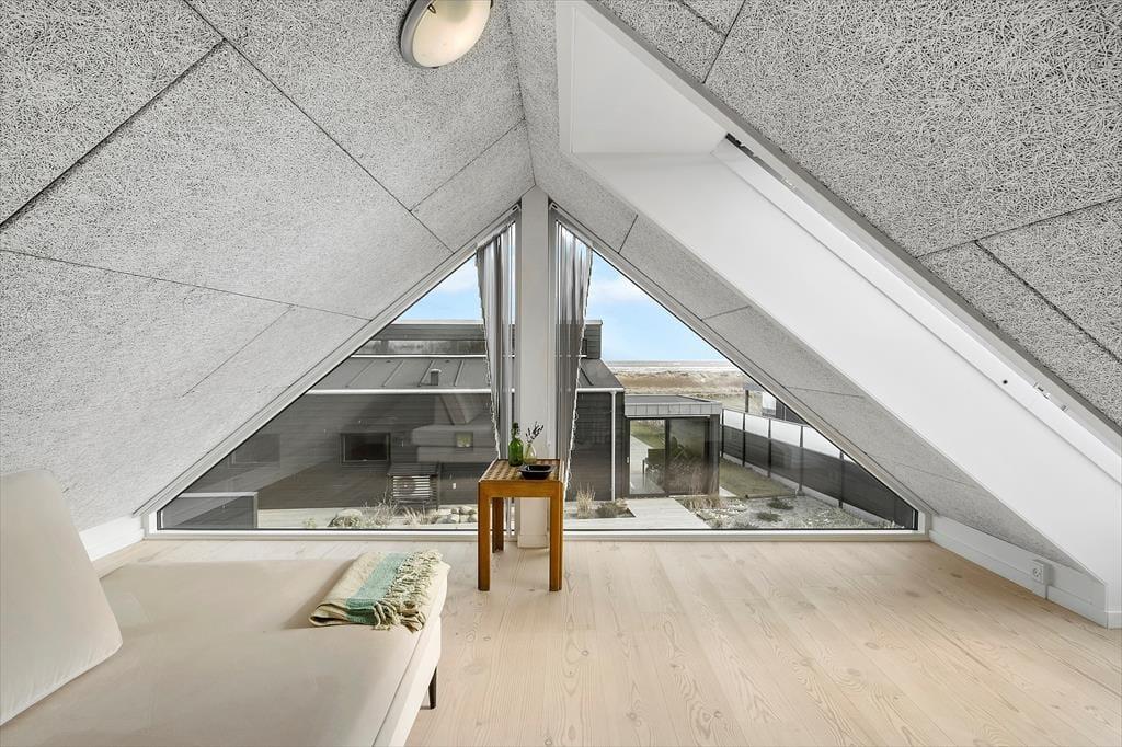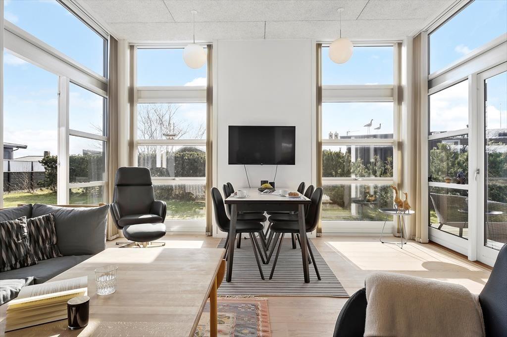 Inde bag sommerhusets mørke træfacade venter der dig en lys og venlig feriebolig med god plads til det tilbagelænede driverliv. Stuen er et herligt sted at slå sig ned med en spændende bog og en varm kop kaffe, og hvis du kan lide at lave mad, skal du glæde dig til at finde lækre råvarer frem fra køleskabet og gå i gang i det åbne køkken. Gennem de høje stuevinduer kan du se vandet, og havudsigten bliver kun endnu bedre, hvis du tager den stejle trappe op til hemsen. Her er der en sovesofa, hvis du vil blive siddende eller måske ligefrem overnatte – selvom husets tre værelser bestemt også er rare steder at sove.