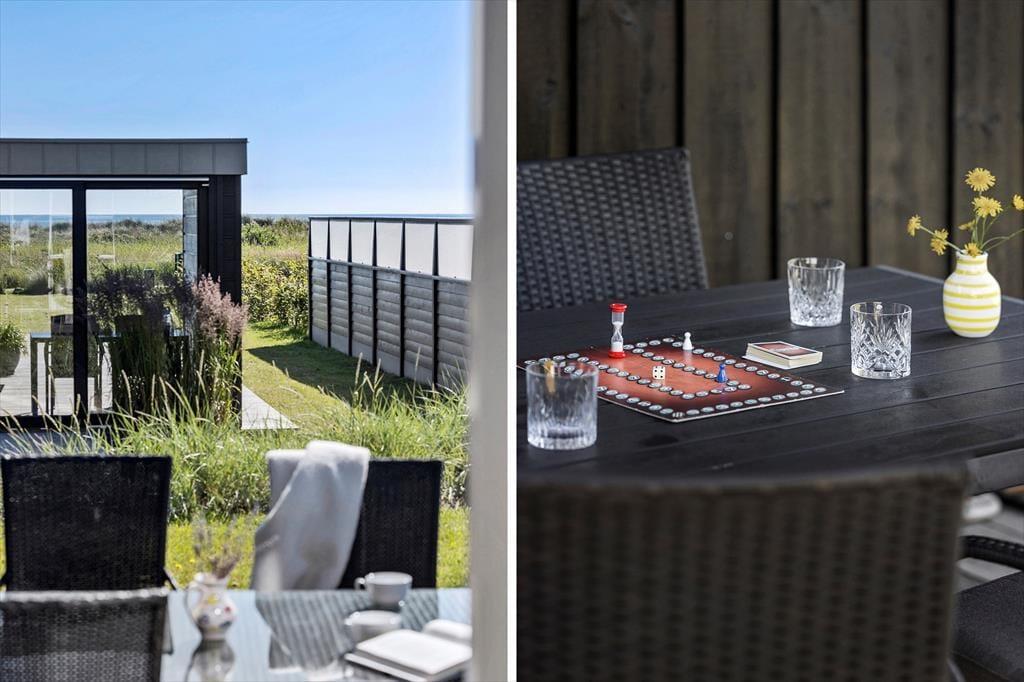 På den pænt anlagte have er der flere terrasser at vælge imellem, så lige fra solen står op i øst, og til den går ned i vest, kan du finde en skøn opholdsplads. Terrassemiljøet mod sydvest er størst, og det er formentlig her, du vil slutte dagen af med at grille aftensmaden eller få en drink i loungemøblerne sammen med dine kære. Hvis du har børn med på ferie, kan de lege på græsplænen – og hvis den ikke er stor nok til familiens fysiske udfoldelser, kan I smutte ned på stranden for at boltre jer i sandet og det lave vand.