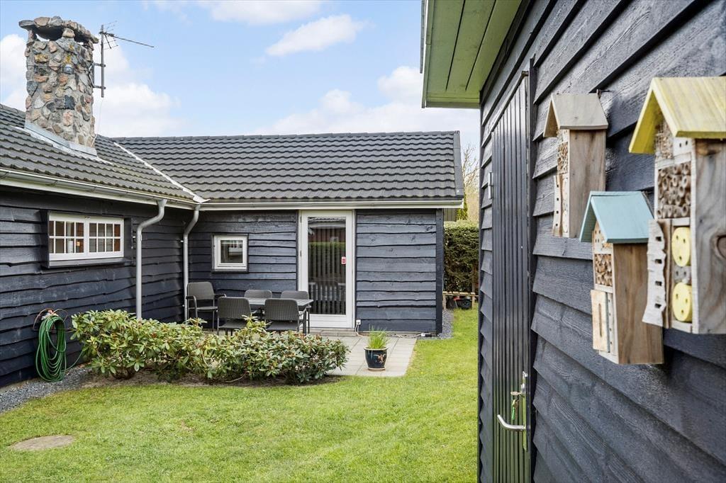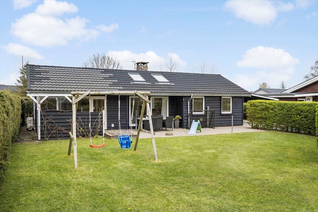 Fra stuen har du direkte forbindelse til den dejlige terrasse, der breder sig mod syd og ud mod den store forhave. Både loungemøblerne og havebordet sørger for, at du kan få det komfortabelt, mens du nyder solen og det rolige ferietempo, og hvis børnene gerne vil have, at der er lidt mere gang i den, er der sandkasse og gynger til rådighed – og en god græsplæne at boltre sig på. På den anden side af huset venter endnu en terrasse, og her er der også skønt at være, når solen står højt på den blå himmel, og alt ånder fred og ro på den lukkede vej.