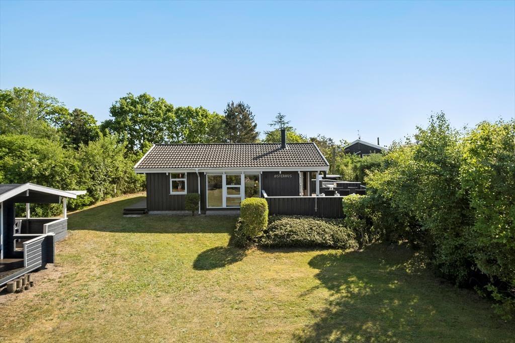 Alt ånder fred og ro på den lukkede og højtbeliggende naturgrund, for selvom adressen er ganske central, bor du helt ugeneret af bymidtens støj. Stranden ligger i kort gåafstand, og den regnes for at være en af de allerbedste og mest børnevenlige strande på den jyske østkyst, så hele familien får mulighed for at soppe, bade og nyde livet her ved Kattegat. Hvis du vil ind til bymidten eller hen på den stemningsfulde havn, kan turen også foregå til fods, og bilen kan derfor oplagt blive holdende ved huset en stor del af ferien. Har du lyst til at komme ud i det blå, er der nu også mange udflugtsmuligheder udenfor Øster Hurup – ikke mindst det fantastiske naturområde Lille Vildmose, hvor du kan se elge, ørne og mange andre vilde dyr.
