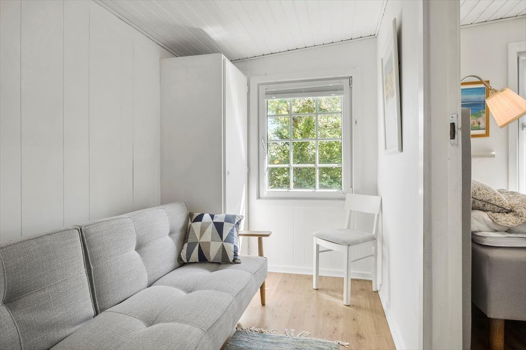 Det er en charmetrold af et sommerhus, der byder dig velkommen her på Toften 63. Huset er opført i 1967, og den sortmalede facade med de hvidmalede sprossevinduer hensætter dig i den helt rigtige feriestemning, så snart du ankommer til grunden. Indenfor er der lyst og venligt, og planløsningen sørger for, at feriens samvær får de bedste betingelser. Køkkenet er åbnet mod den hyggelige stue med brændeovn, og maden kan serveres i den tilstødende havestue, som har direkte udgang til terrassen og et helt fantastisk lysindfald takket være de store vinduespartier mod syd og vest. Huset indeholder herudover to soveværelser og et badeværelse, og der er ekstra sengepladser i annekset.