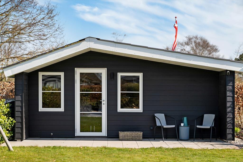 Udenfor fortsætter feriestemningen i fuldt flor. Sommerhuset ligger omgivet af grønne omgivelser og flere lækre terrassemiljøer, så du altid kan finde et sted i læ for vinden eller i solen alt efter dagens humør. Start dagen med morgenkaffen på den østvendte terrasse, nyd en lang frokost i drivhuset, mens du kigger ud på haven, og afslut med aftensmad og aftenstemning i solens sidste stråler. Drivhuset er møbleret og fungerer som et ekstra opholdsrum, hvor du kan nyde udelivet selv på de mere kølige dage. Her kan du for eksempel nyde en god bog i varmen, spille brætspil med børnene eller bare sidde og lytte til regnen, der trommer sagte på taget. De hyggelige uderum indbyder til leg, afslapning og fælles måltider under åben himmel – og på varme sommeraftener kan du tænde grillen og lade duften af stegte grøntsager og saftige bøffer brede sig over haven.