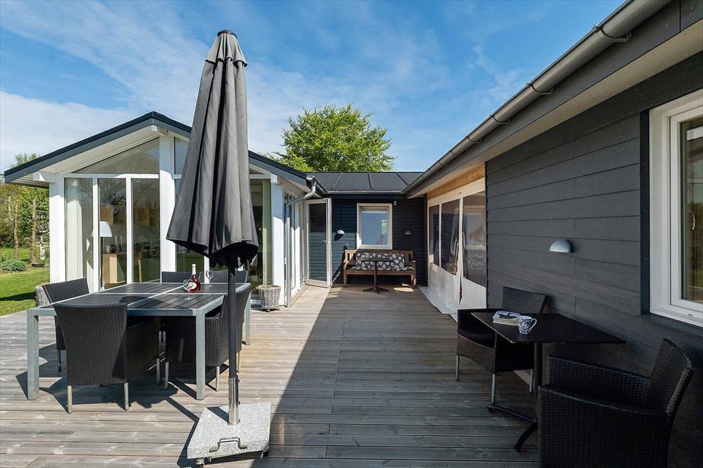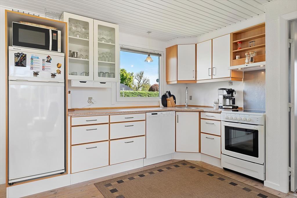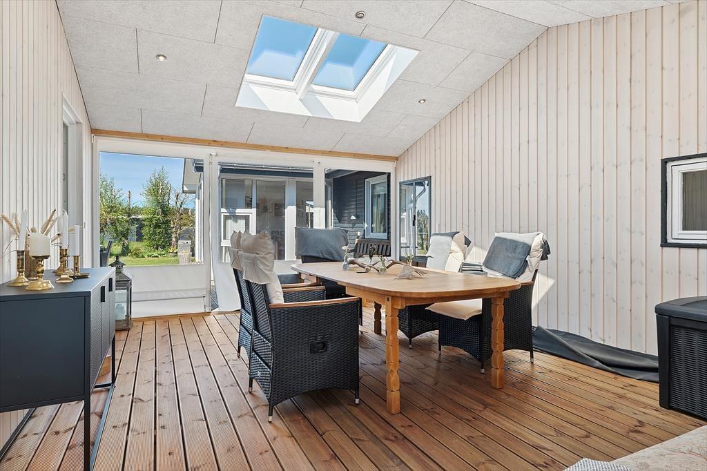 Huset er særligt indrettet med en stue som naturligt bindeled mellem to separate værelsesafdelinger, hvilket gør det ideelt, hvis to familier eller generationer holder ferie sammen. Stilen er gennemgående lys, og både indretningen og atmosfæren emmer af afslappet sommerhusstemning med hjemlige detaljer og velvalgte møbler. I stuen inviterer komfortable siddepladser til hyggelige aftener med brætspil eller film, og store vinduespartier lukker masser af dagslys ind. Måltiderne kan nydes omkring spisebordet i stuen eller bringes udenfor – og med huset som tryg base er det nemt at skabe netop de ferieminder, du længes efter. Lyden af latter, duften af nybrygget kaffe og følelsen af bare tæer mod trægulv – det hele venter her.