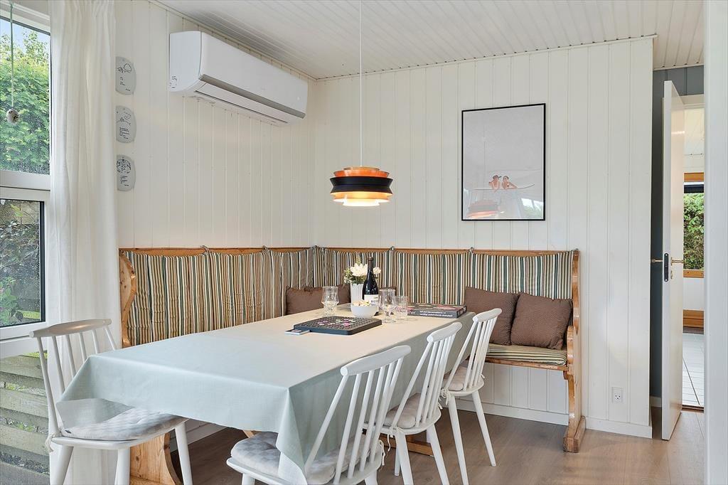 Når du træder ind i sommerhuset på Hedegaarde Nord 18, mærker du straks den særlige stemning, der kendetegner et rigtigt klassisk sommerhus. Indretningen er hyggelig og hjemlig med lyse materialer, komfortable møbler og små detaljer, der gør det nemt at finde ferieroen. Stuen indbyder til afslapning med en god bog eller hyggelige brætspil, og der er god plads til samvær med dem, du holder af. Køkkenet ligger i sin egen afdeling og er lyst og funktionelt – her er alt det, du har brug for til feriens måltider, hvad enten det er morgenkaffen, en hurtig frokost eller en hjemmelavet middag. Her får du en feriebase, hvor stemningen er varm, og dagene er dine til at nyde i eget tempo.