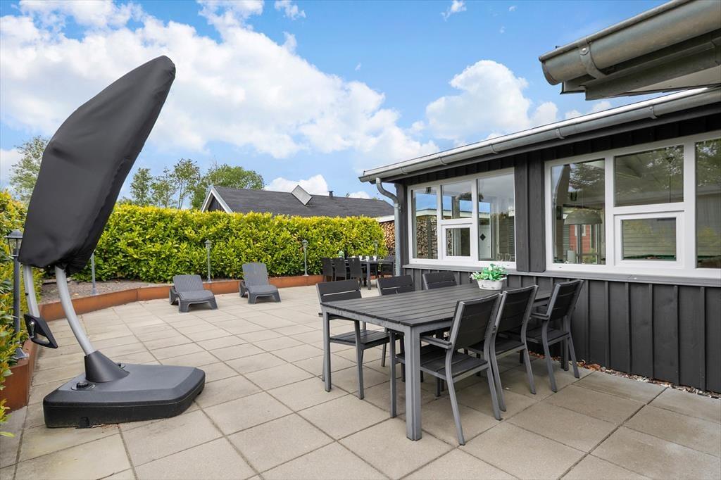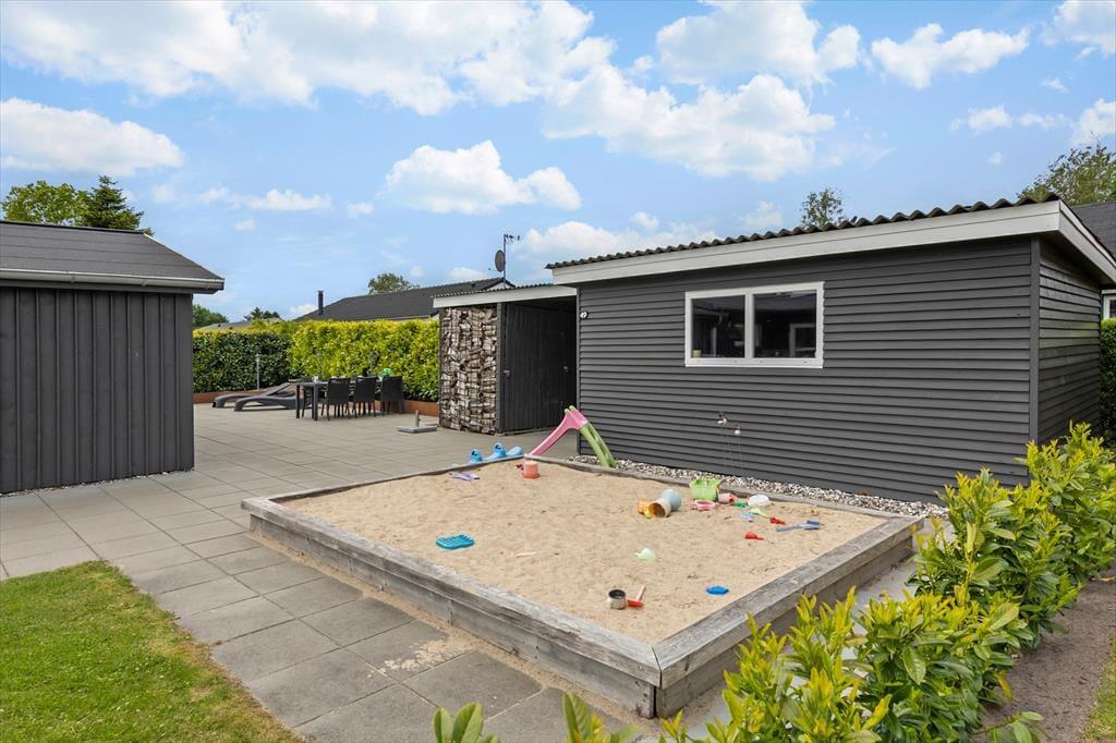 Udendørs venter en dejlig, grøn grund med god plads til både afslapning og leg. Den lukkede terrasse gør det trygt at lade hunden løbe frit omkring, mens du selv nyder en stille stund i havemøblerne med en bog eller en kop kaffe i hånden. Her kan du følge solens gang på himlen, fra den første morgensol, der rammer terrassen, til den bløde aftengløde, der lægger sig over haven, når grillen tændes, og middagen tilberedes under åben himmel. Børnene kan tumle på græsplænen, mens de voksne slapper af – og måske sluttes dagen af med en gåtur ned mod Kattegat, hvor bølgerne klukker mod kysten, og aftenlyset spejler sig i vandet.