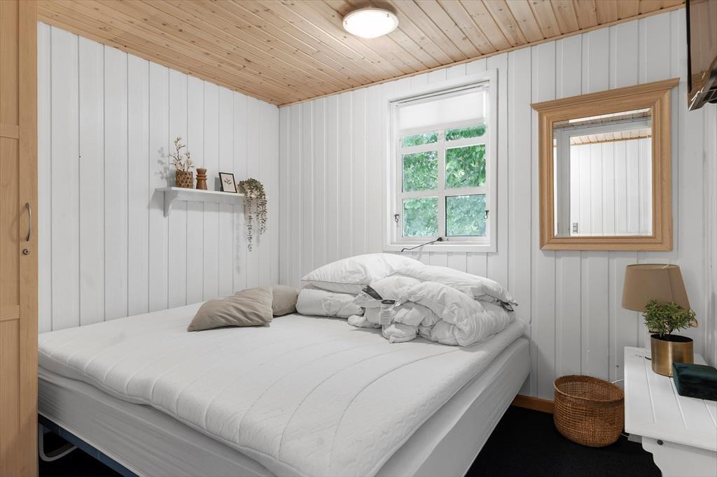 Indenfor mødes du af en lys og indbydende atmosfære, hvor sommerhusstemningen straks sætter ind. Indretningen er varm og hjemlig med hyggelige detaljer og en dejlig rummelighed, der gør det nemt at finde sig godt til rette. Her er tænkt over komforten, og man fornemmer straks, at huset er skabt til hyggelige feriedage med familien eller gode venner. Den åbne planløsning gør det let at være sammen – uanset om nogen er i gang med madlavningen, mens andre læser, spiller spil eller bare slapper af med en god film i stuen. De store vinduespartier sørger for et naturligt lysindfald, og skaber en rolig og afslappende stemning i alle rum. Huset har plads til seks personer, og du må også gerne tage familiens hund med – den vil med garanti nyde godt af både det trygge indeklima og den lukkede have udenfor.