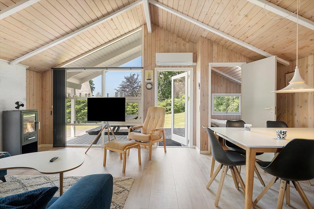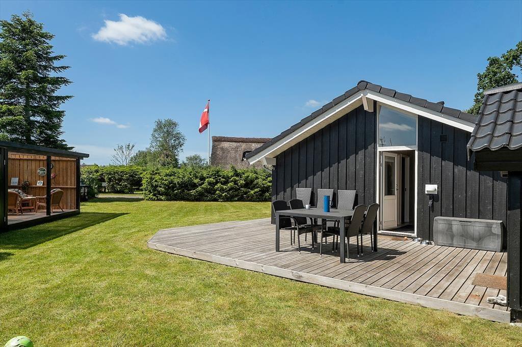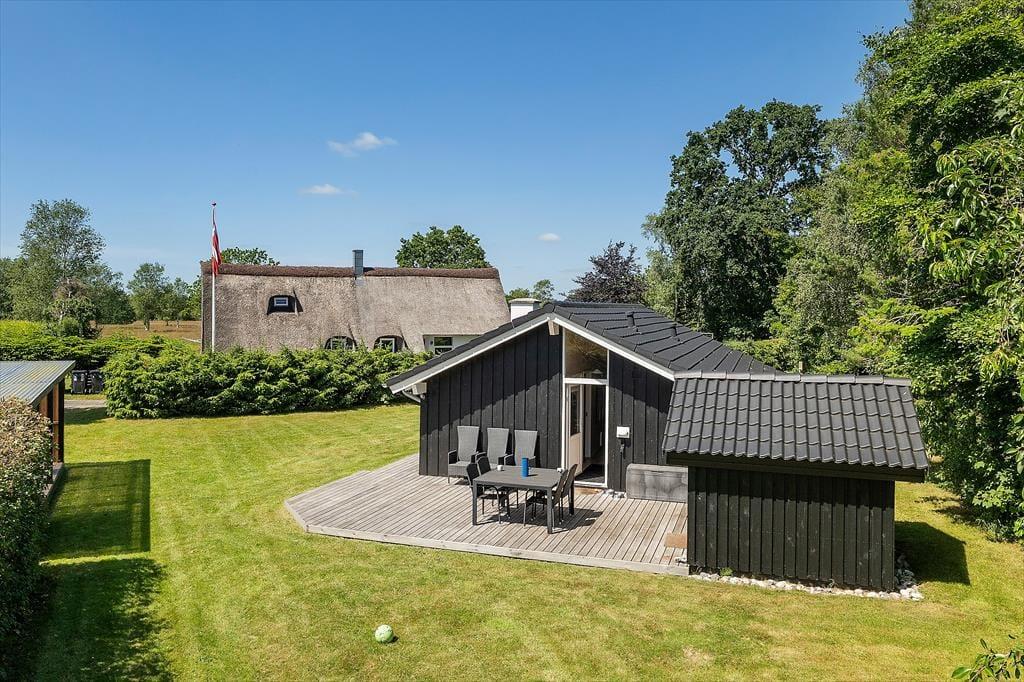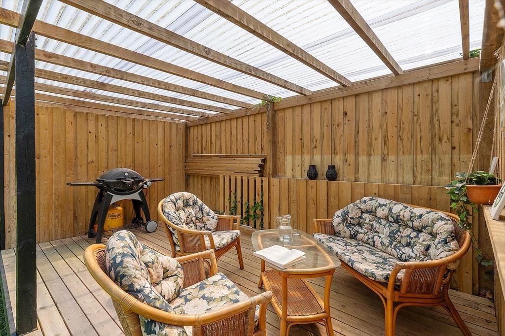 Udelivet er noget helt særligt på Oasen 49. Huset har en stor terrasse, der nærmest går hele vejen rundt om huset, så du altid kan finde læ, sol eller skygge – præcis som du ønsker det. Den overdækkede del af terrassen er et oplagt tilflugtssted, hvis du gerne vil nyde morgenkaffen i tørvejr, selv hvis en sommerbyge drysser ned fra himlen. Her er en særlig ro over omgivelserne, for huset ligger ugeneret for enden af en lille vej, og de grønne omgivelser indbyder til at sænke skuldrene. Mens børn og hund leger på plænen, kan du læne dig tilbage i en liggestol, dække op til frokost i det fri eller tænde op i grillen til en stemningsfuld aften med familiens livretter på menuen. Her får du ferieliv, som det bør være – afslappet, autentisk og fyldt med små stjernestunder.
