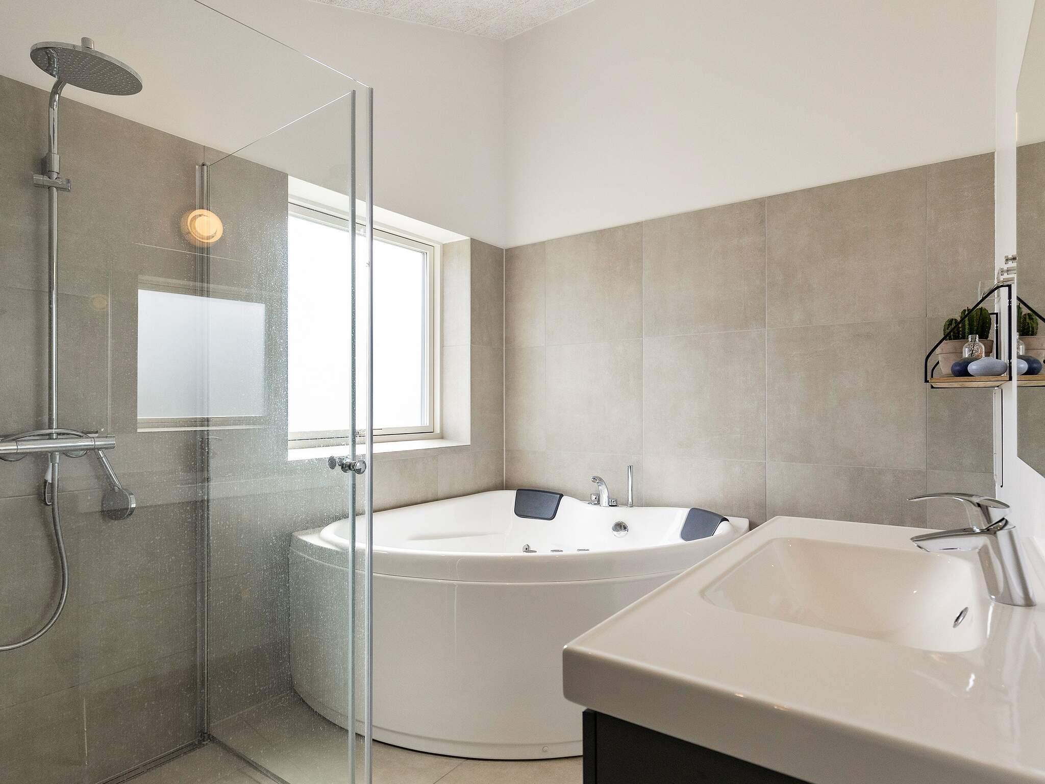 Med fem dobbeltværelser, hvoraf fire også kan indrettes som enkeltværelser, og et ekstra værelse med fire køjesenge, kan huset komfortabelt rumme større familier eller grupper. Tre badeværelser, herunder et med spabad og sauna, sikrer, at der ikke mangler komfort. Moderne faciliteter såsom vaskemaskine, tørretumbler, opvaskemaskine og ladestation til elbiler gør dit ophold endnu mere bekvemt.