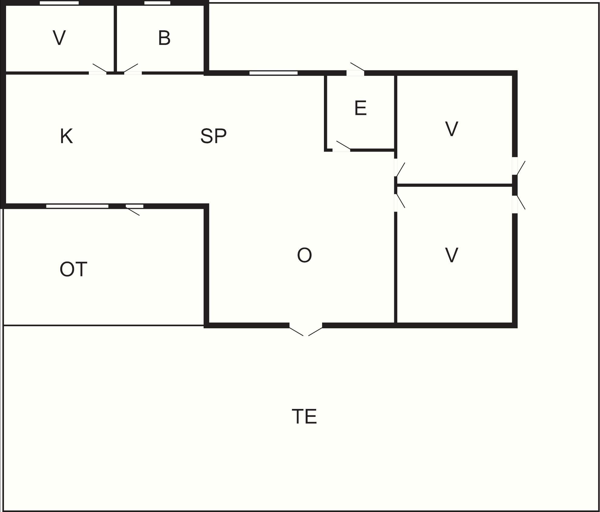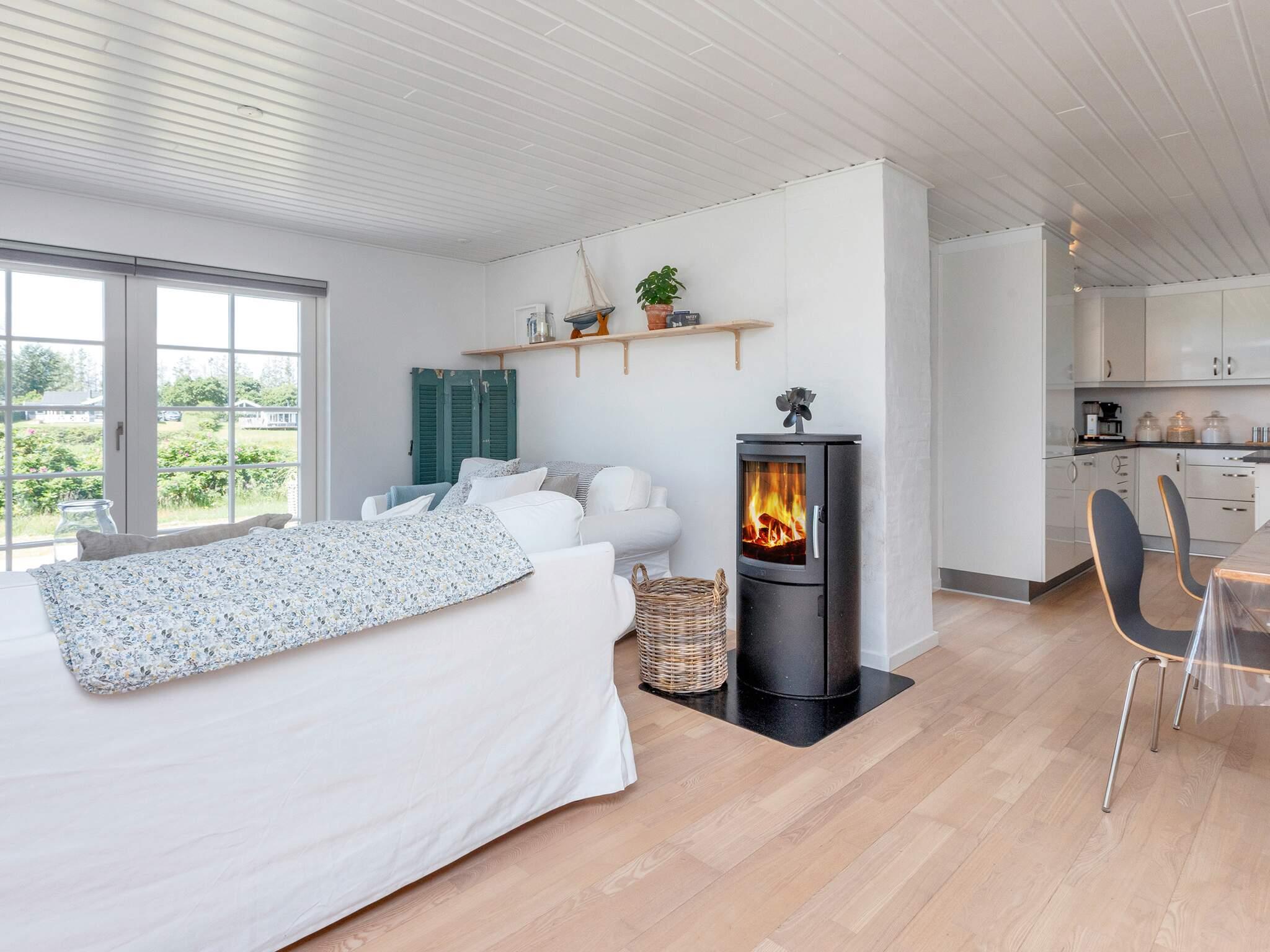 Køkken/alrum med alt i hårde hvidevarer. Stue med brændeovn. 1 soverum med dobbeltseng, 1 soverum med ¾-seng og 1 værelse med køjesenge 80x190 cm. Badeværelse med bruseniche og gulvvarme.