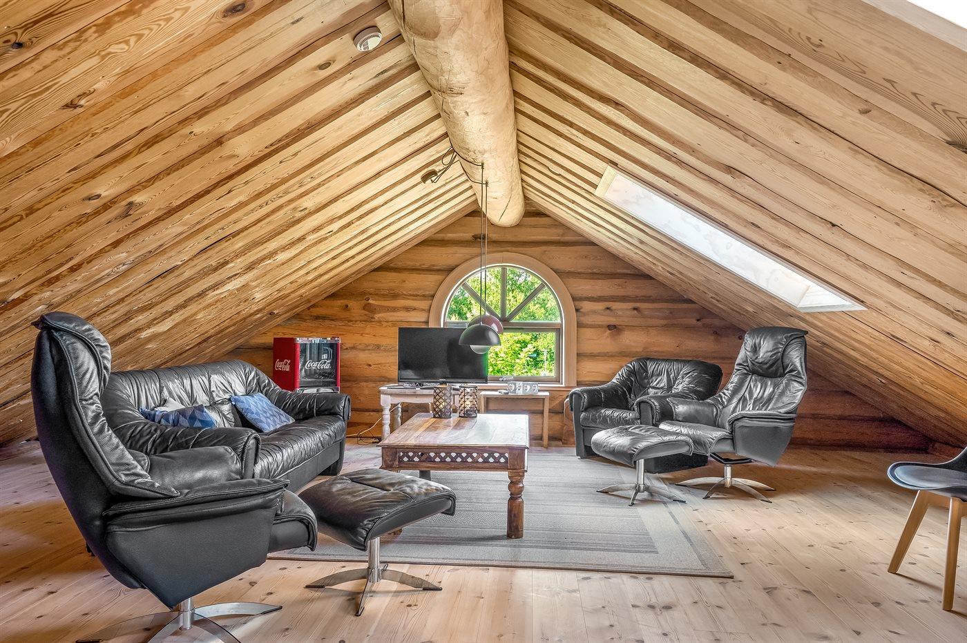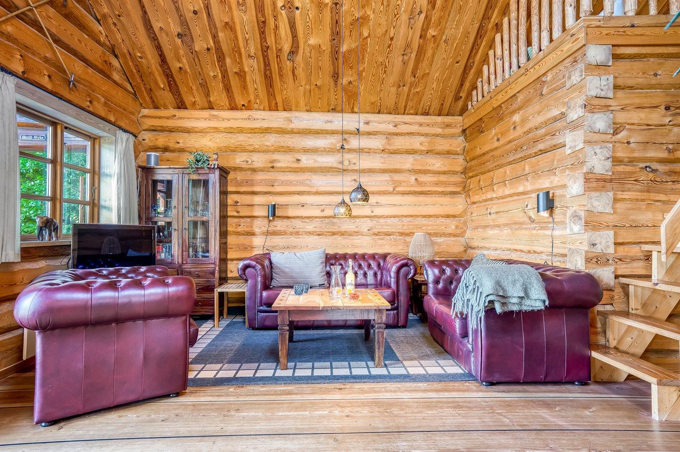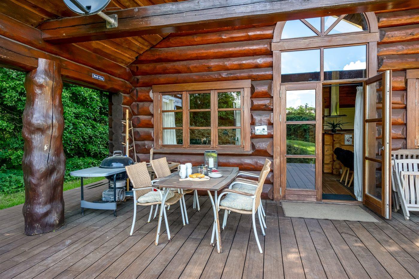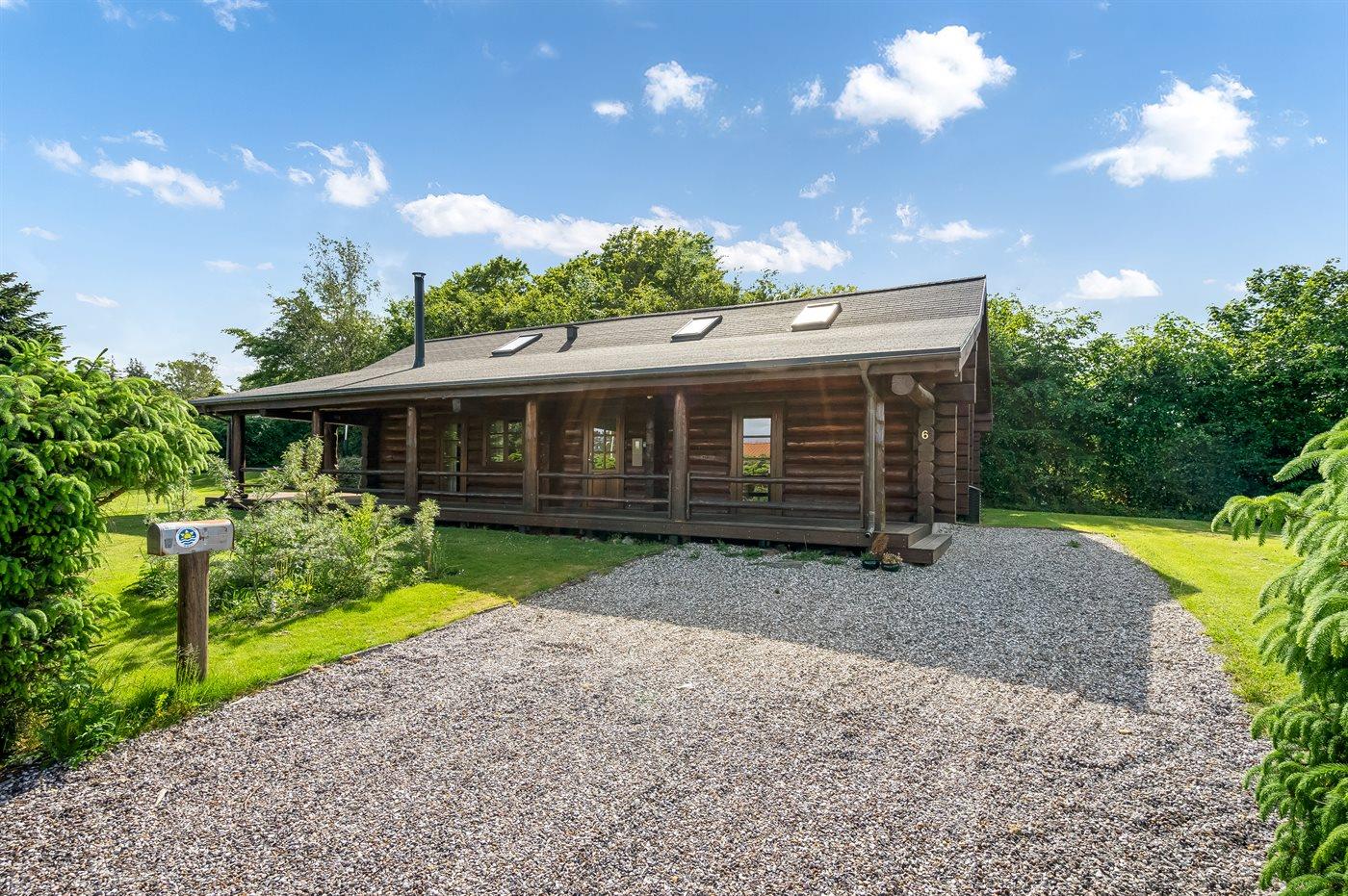 Lækkert bjælkehus med en flot og rusik indretning og hvor der fra såvel hus som grund er udsigt til vandet.
