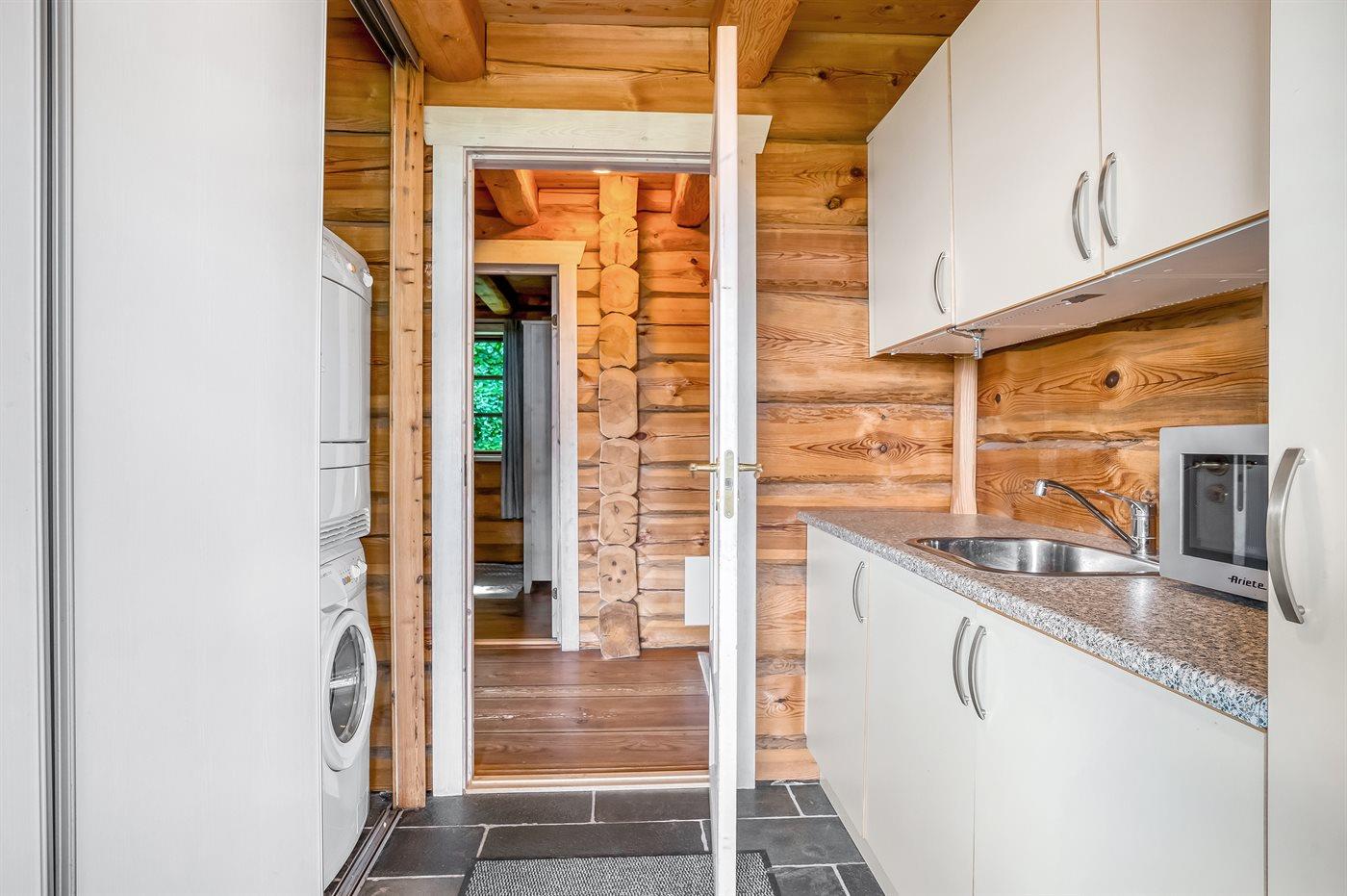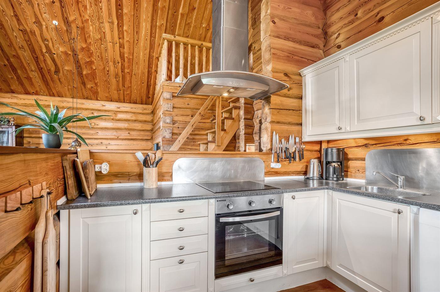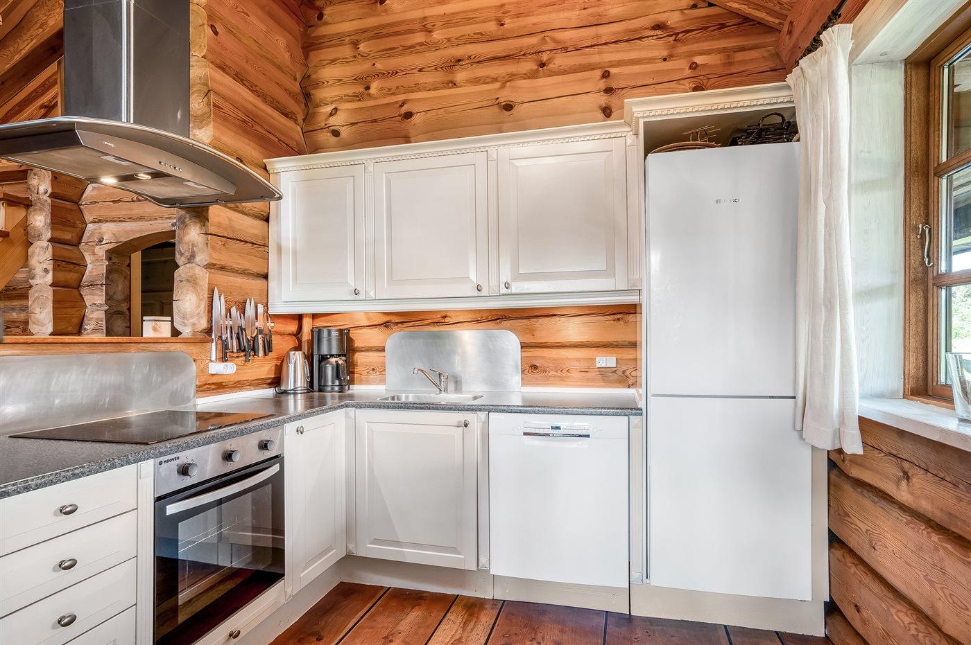 Køkkenet er udstyret med 1 køleskab. Der er 4 keramiske kogeplader, varmluftovn, mikrobølgeovn samt opvaskemaskine. Der findes ekstra køleskab på hemsen.
