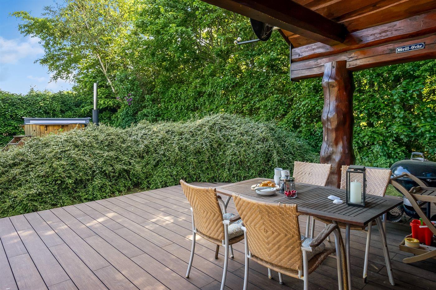 Der findes endvidere et dejligt vildmarkskar til 5 personer - her kan I slappe af og nyde udsigten over grunden.