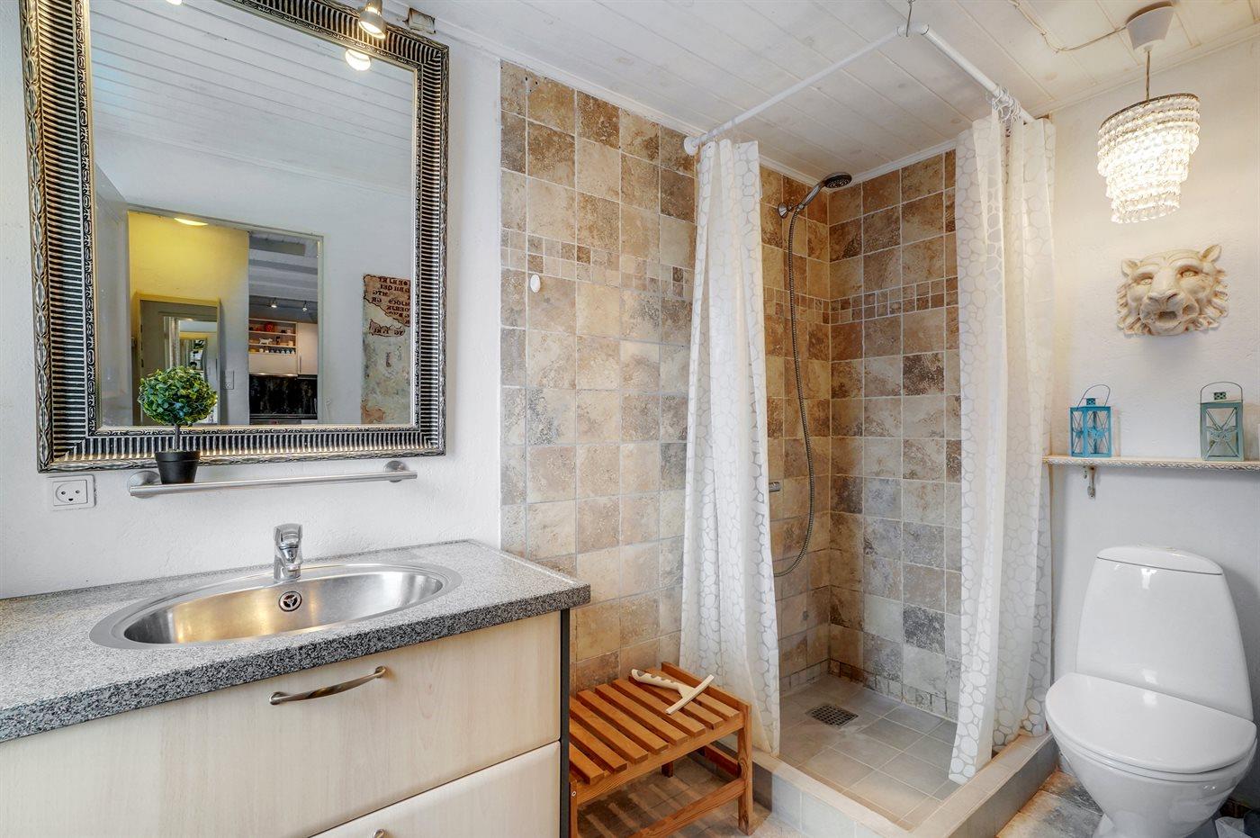 Der er 2 badeværelser med bruser og 2 toiletter. Badekar.