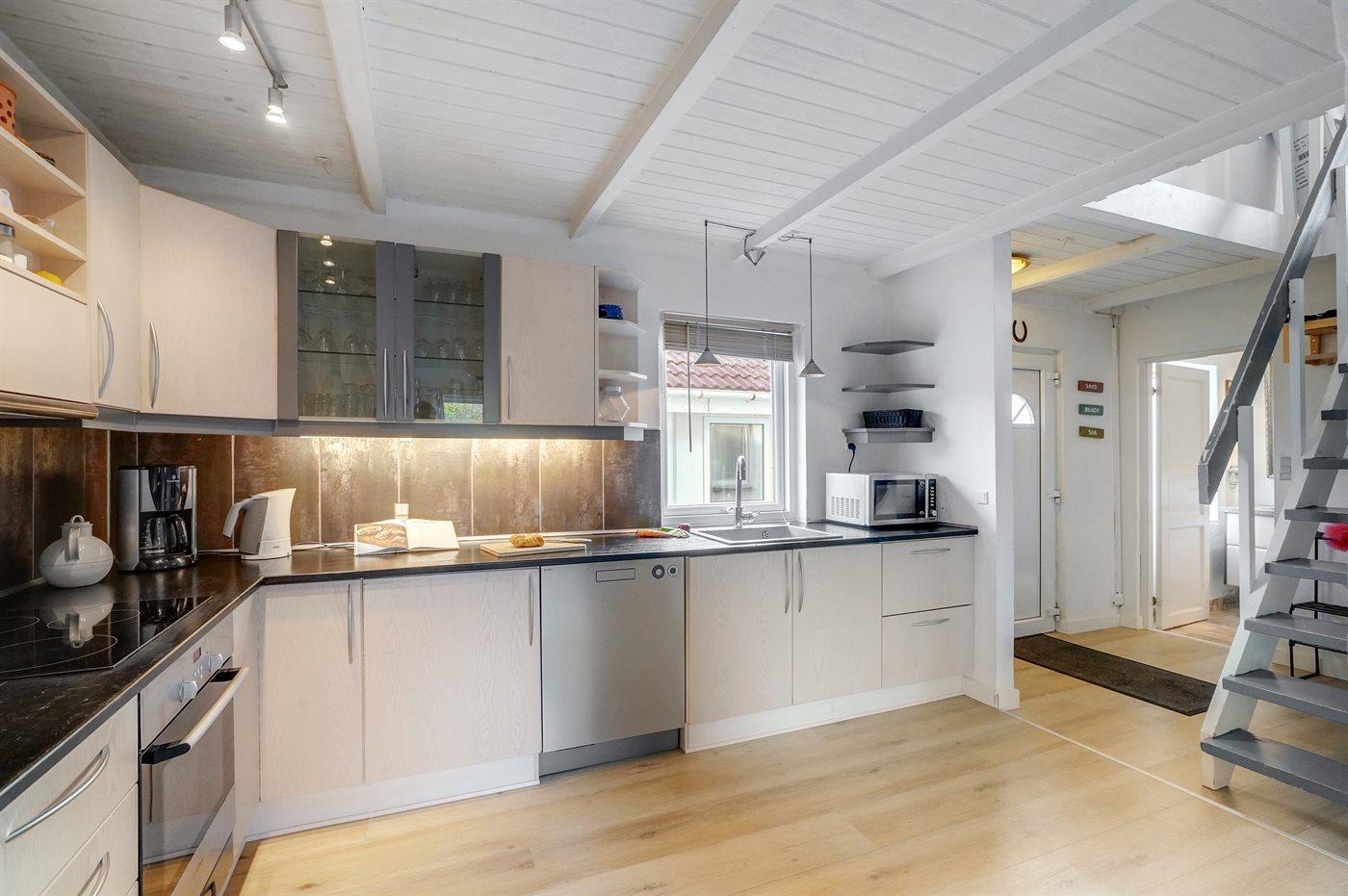 Køkkenet er udstyret med 1 køleskab. Der er 4 keramiske kogeplader, varmluftovn, mikrobølgeovn samt opvaskemaskine.