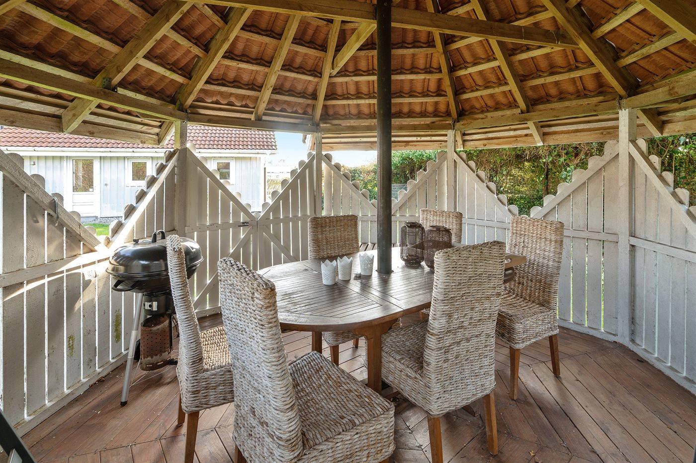 Ferieboligen er beliggende på en 1044 m² stor havegrund. Der er 100 m til havet. Nærmeste forretning er beliggende i en afstand af 200 m. Til ferieboligen hører 50 m² terrasseareal. Desuden er der 10 m² overdækket terrasse. Desuden adgang til pavillon. Udgang til altan. Rutchebane. Parkering ved ferieboligen.