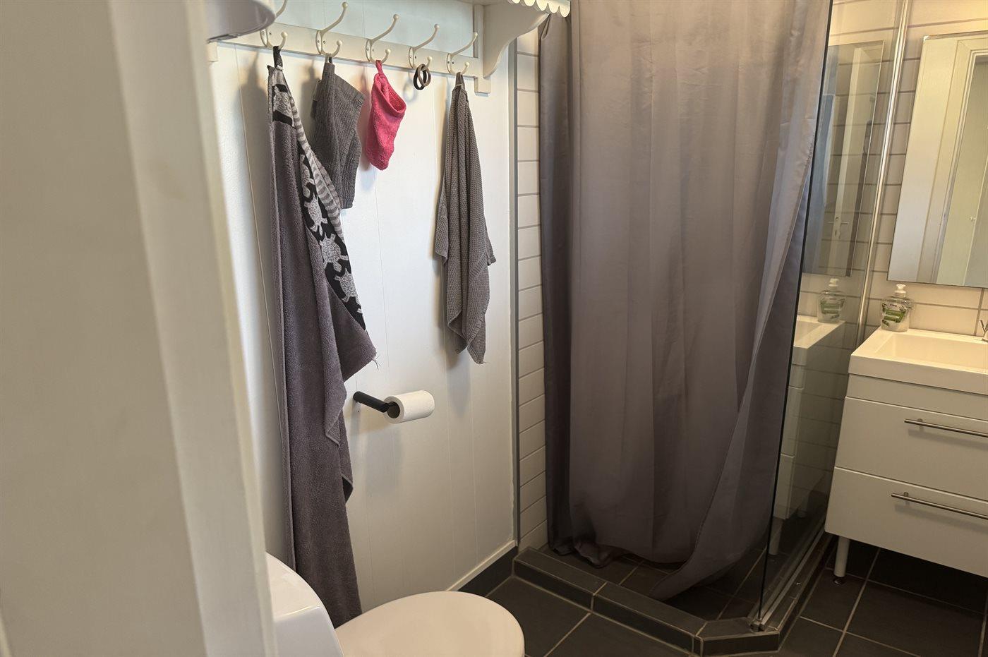 Der er 1 badeværelse med bruseniche og 1 toilet.. Der er gulvvarme på 1 badeværelse.