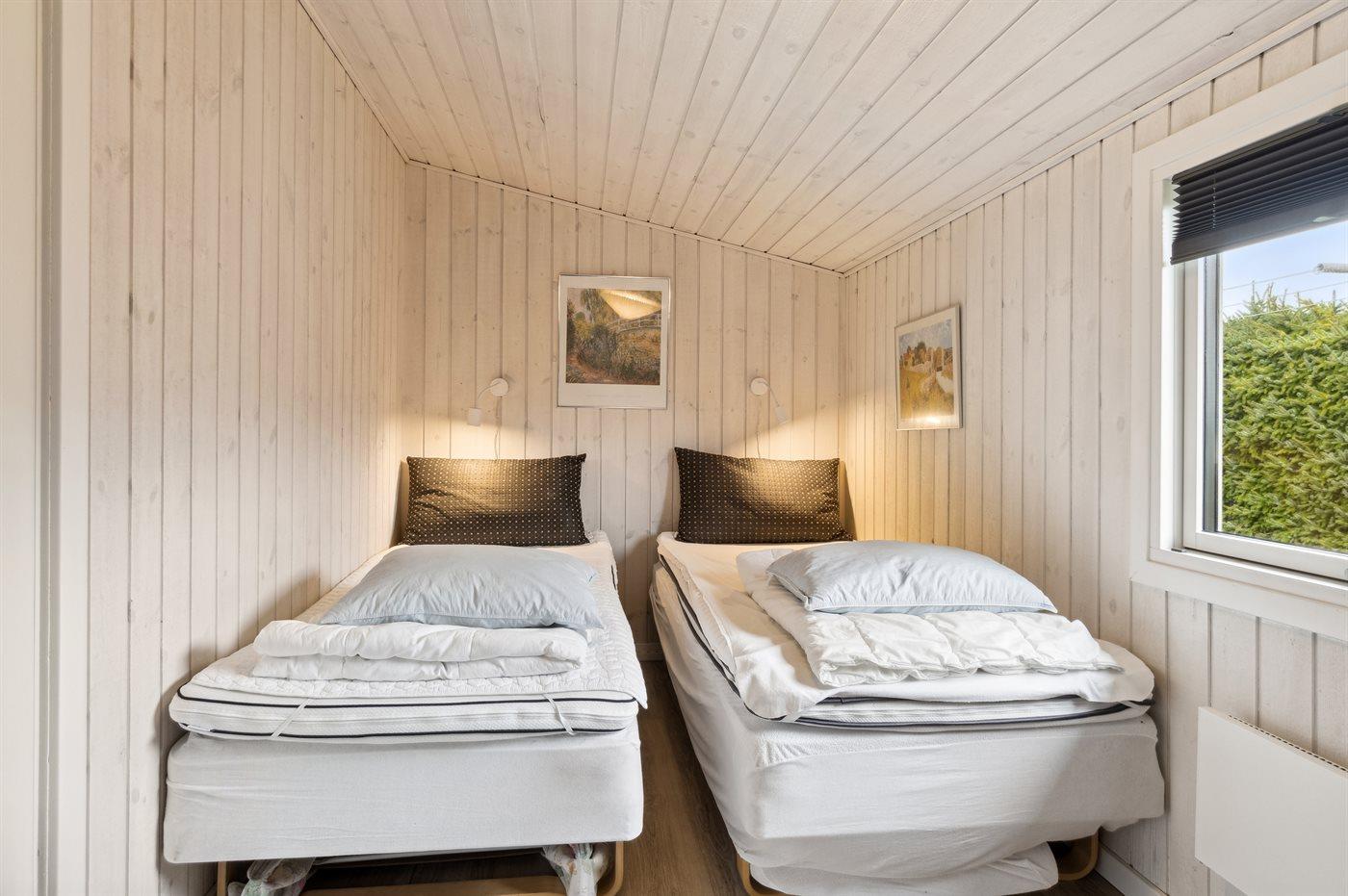 Der er i alt 3 soveværelser. Sovepladserne fordeler sig på: 4 sovepladser i dobbeltsenge. 2 sovepladser i enkeltsenge. Derudover er der 1 stk. barneseng.