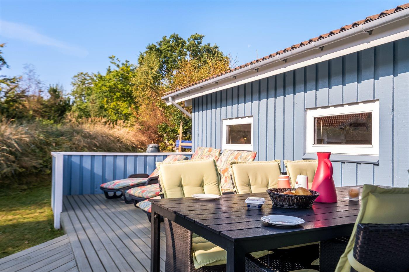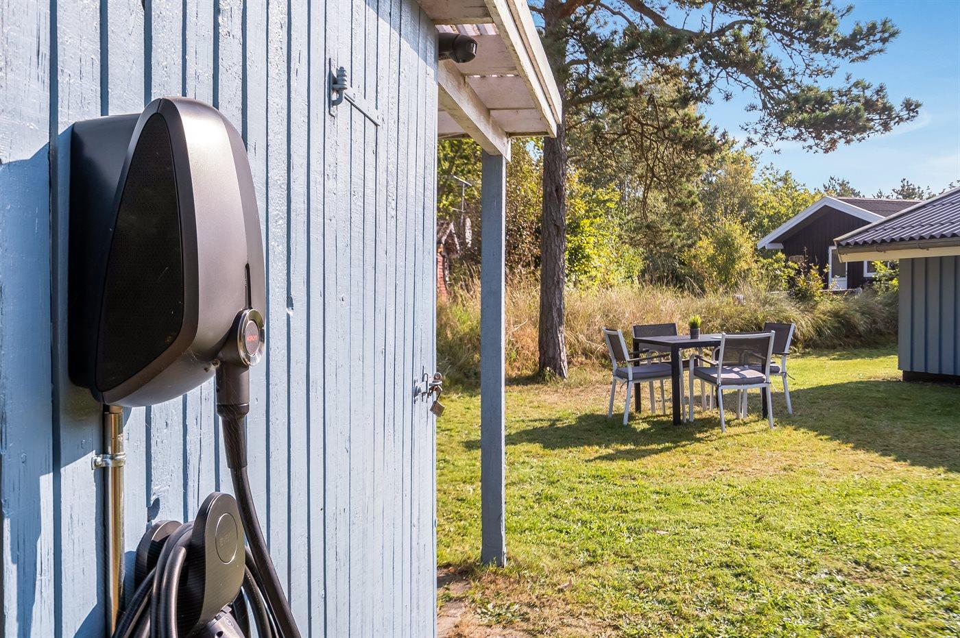 Ferieboligen er beliggende på en 1080 m² stor naturgrund. Der er 100 m til havet. Nærmeste forretning er beliggende i en afstand af 2000 m. Til ferieboligen hører 45 m² terrasseareal. Gynge. Sandkasse. Grill til rådighed. Der er installeret stik til opladning af elbil. Type 2 stik. Med 11 kW ladeeffekt. Parkering ved ferieboligen.