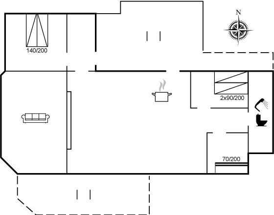 Der er i alt 3 soveværelser. Sovepladserne fordeler sig på: 2 sovepladser i dobbeltseng. 2 sovepladser i enkeltsenge. 2 sovepladser i køjeseng.