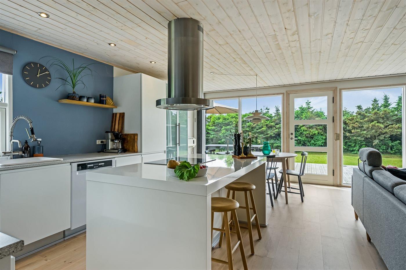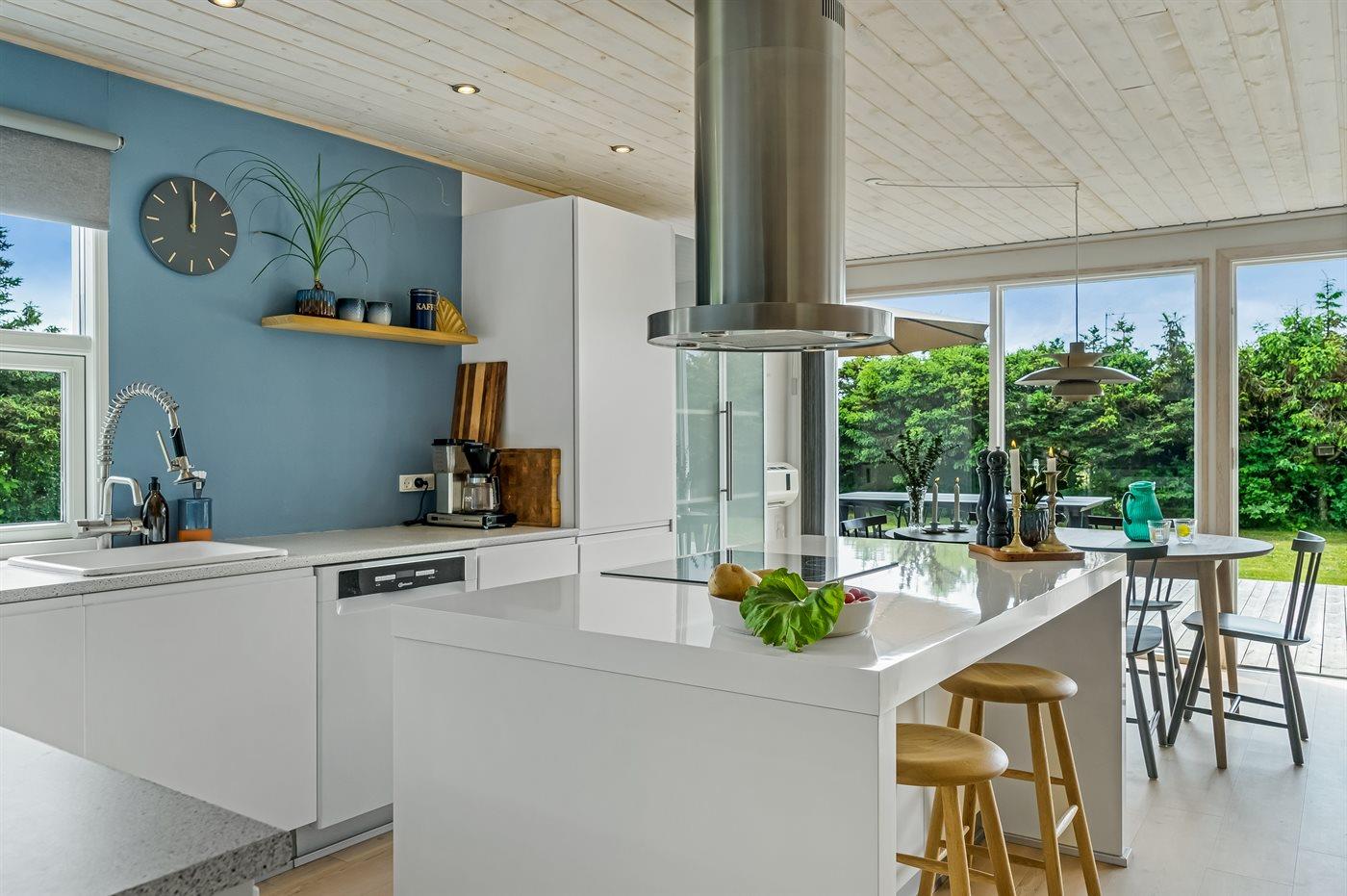Køkkenet er udstyret med 1 køleskab. Der er 4 keramiske kogeplader, varmluftovn samt opvaskemaskine.