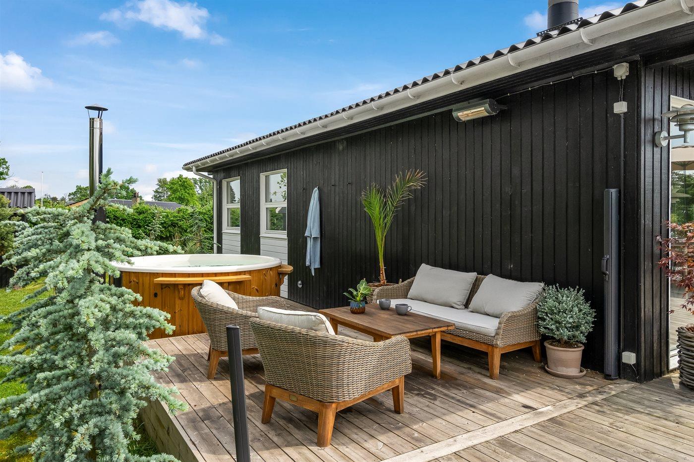 Der er etablereret en meget flot og stor terrasse, hvor der findes udendørs spa (standvand), som står til rådighed fra uge 26 til og med uge 34. På grunden findes desuden et anneks, hvor 2 af sovepladserne befinder sig.