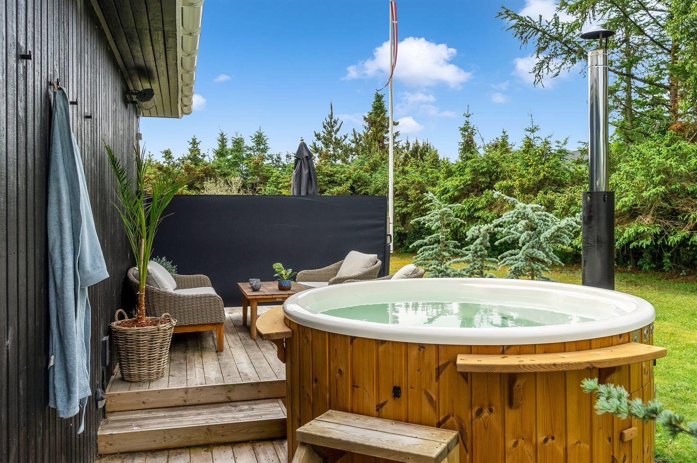 Hyggeligt sommerhus i Øster Hurup med stor terrasse, spa og tæt på strand og by.