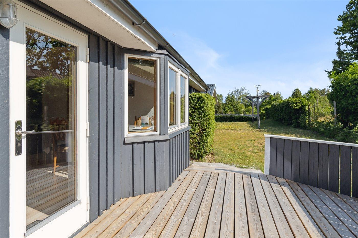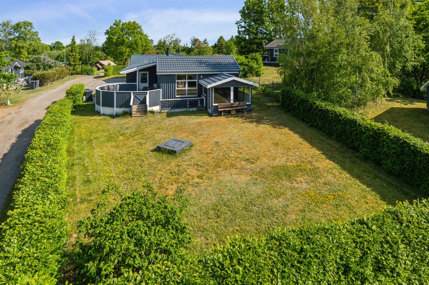 Ferieboligen er beliggende på en 865 m² stor havegrund. Grunden er indhegnet. Der er 550 m til havet. Nærmeste forretning er beliggende i en afstand af 650 m. Til ferieboligen hører åbent terrasseareal. Ligeledes er der adgang til udestue. Grill til rådighed. Parkering ved ferieboligen.