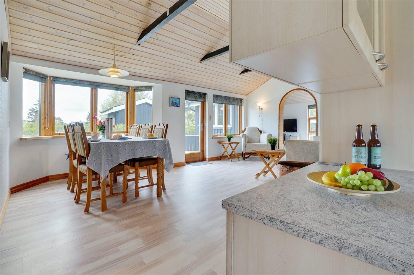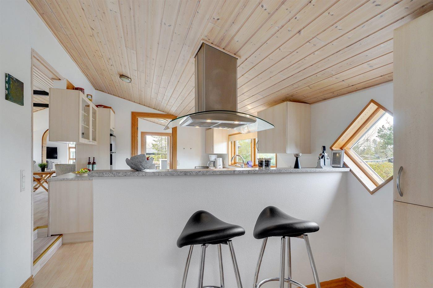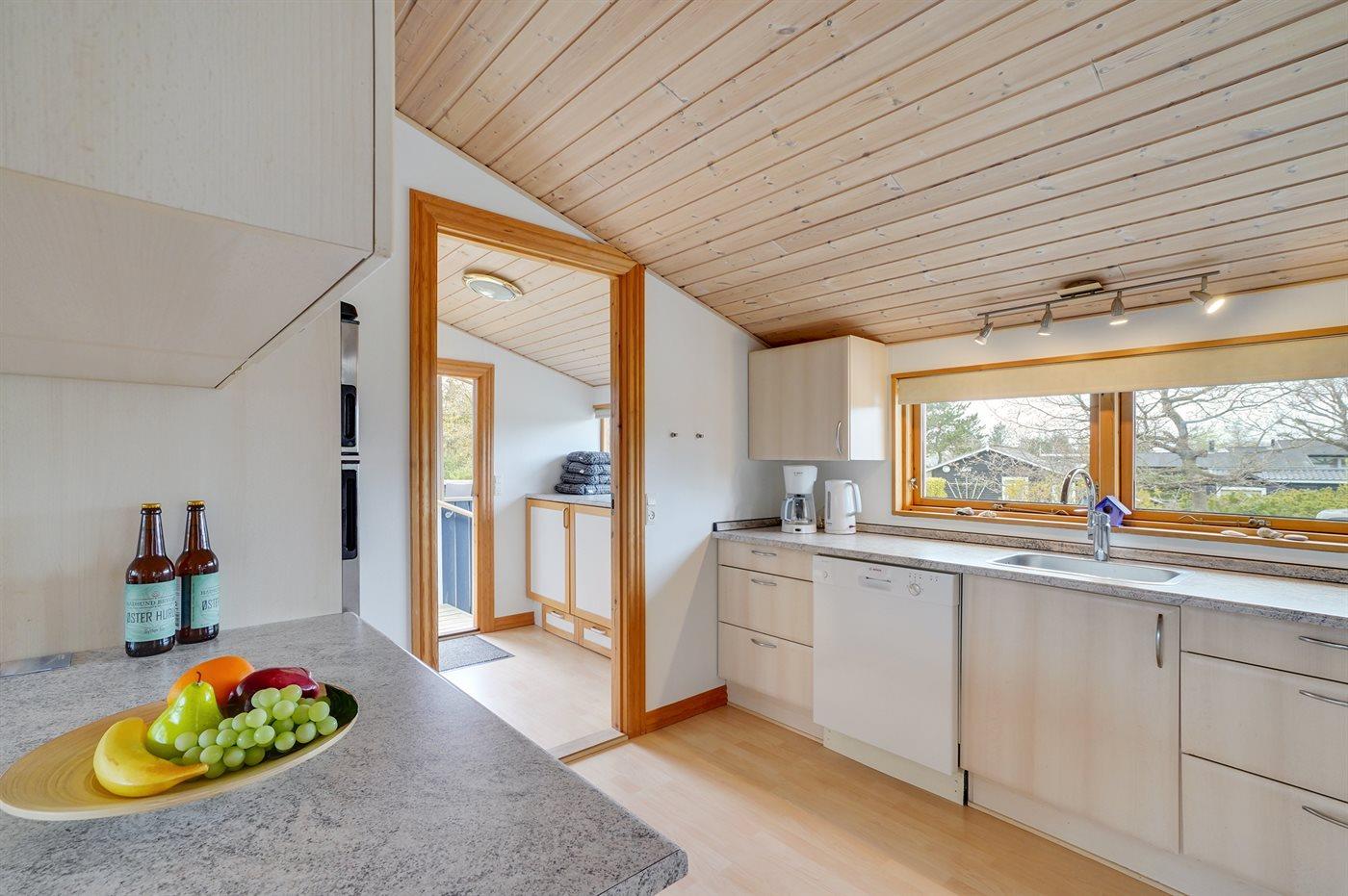 Køkkenet er udstyret med 1 køleskab. Der er 4 keramiske kogeplader, varmluftovn samt opvaskemaskine.