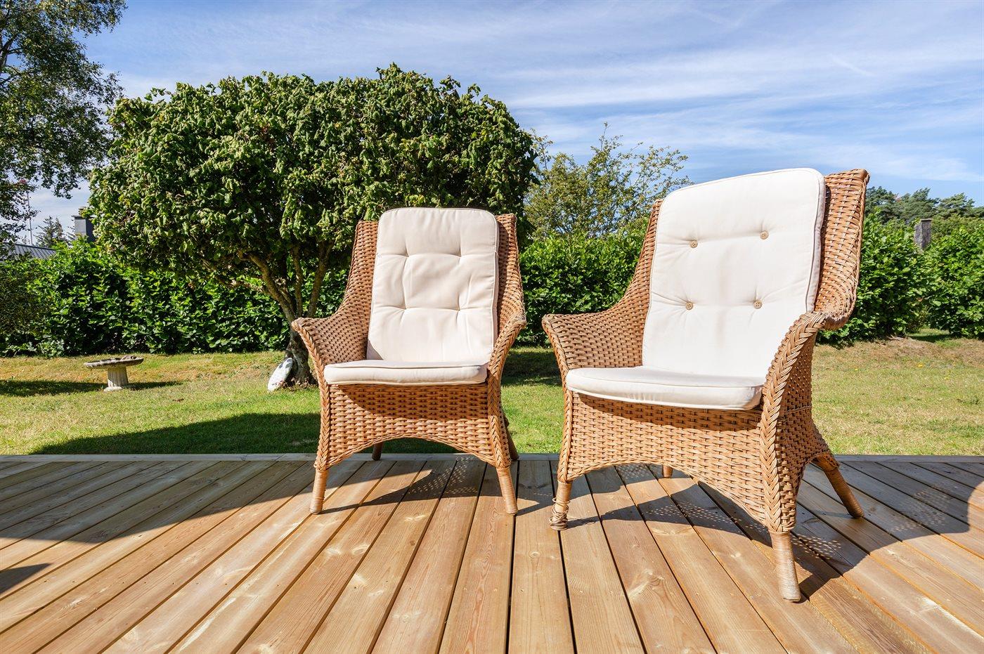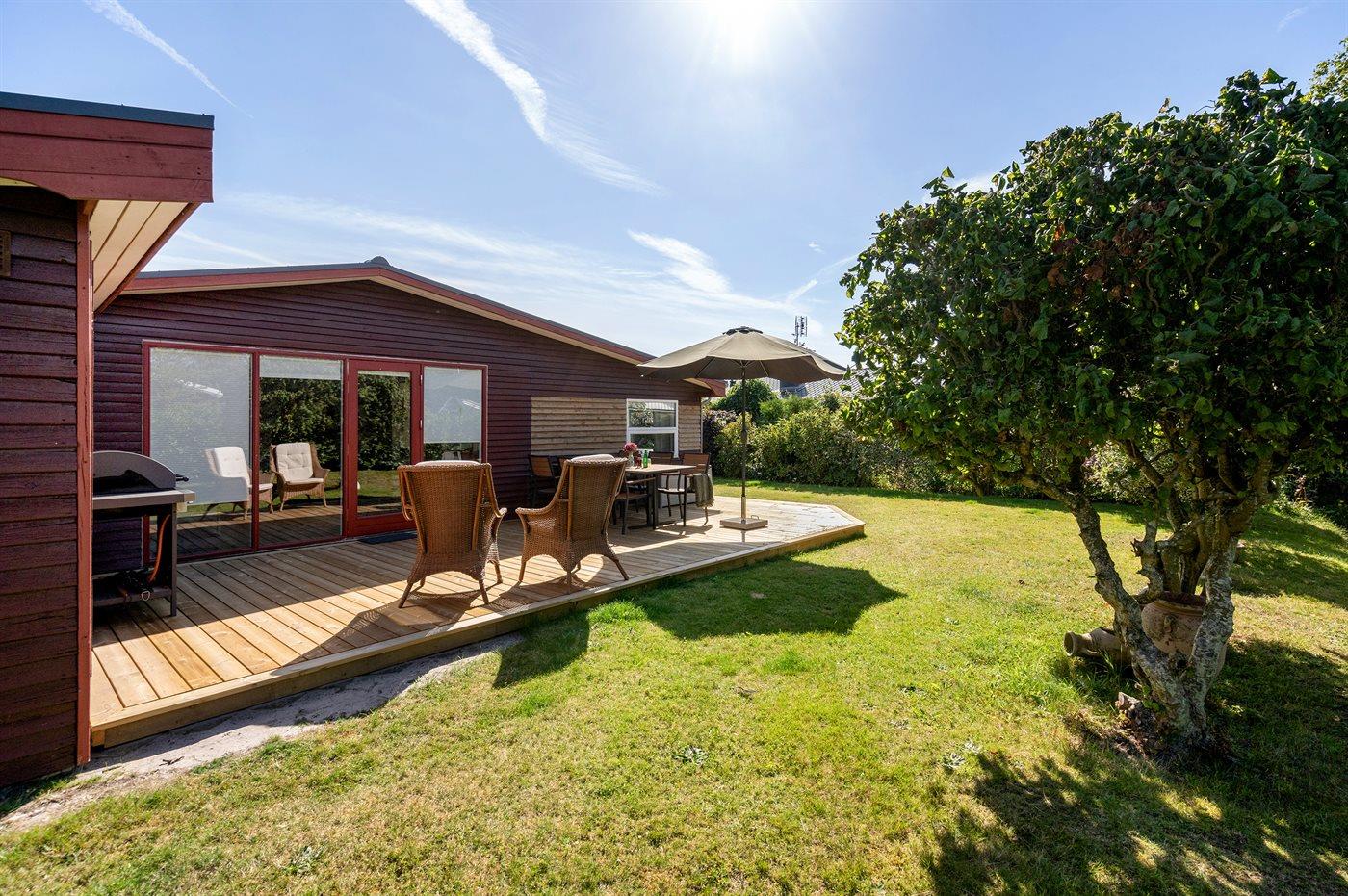 Ferieboligen er beliggende på en 636 m² stor havegrund. Der er 600 m til havet. Nærmeste forretning er beliggende i en afstand af 2000 m. Til ferieboligen hører åbent terrasseareal. Desuden er der overdækket terrasse. Grill til rådighed. Parkering ved ferieboligen.