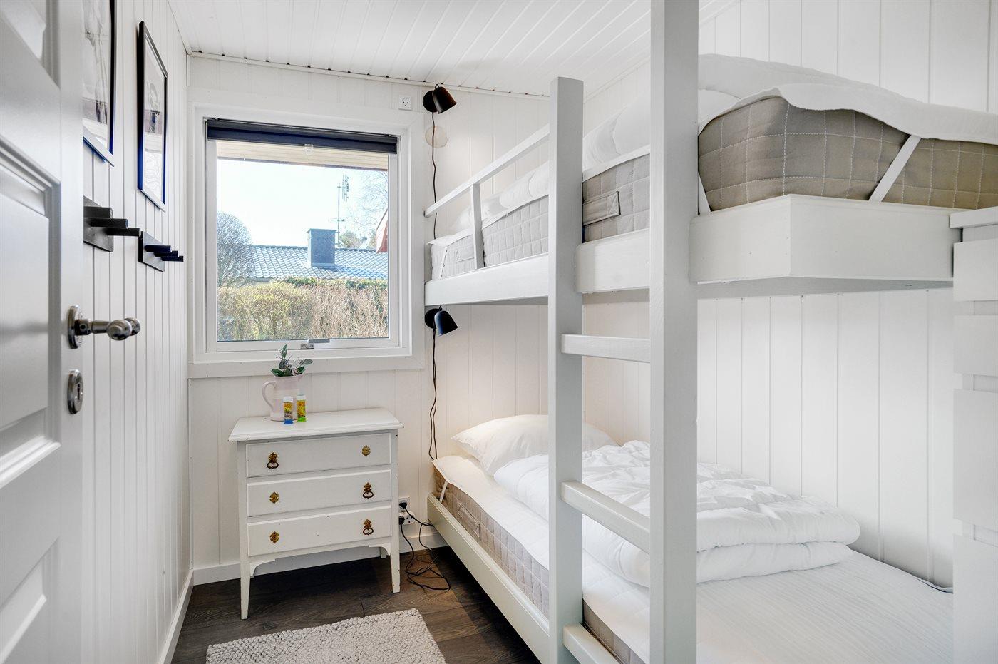 Der er i alt 3 soveværelser. Sovepladserne fordeler sig på: 2 sovepladser i dobbeltseng. 2 sovepladser i enkeltsenge. 2 sovepladser i køjeseng.