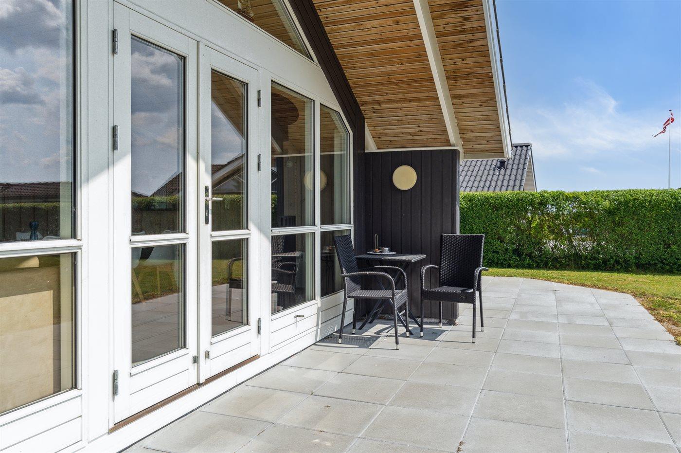 Dejligt sommerhus beliggende i kort gåafstand til den lækre, børnevenlige sandstrand. Legeland, udendørs legepladser, ishuse, indkøb og restauranter ligger også i kort afstand fra huset. Her er der mange muligheder for at blive aktiveret.